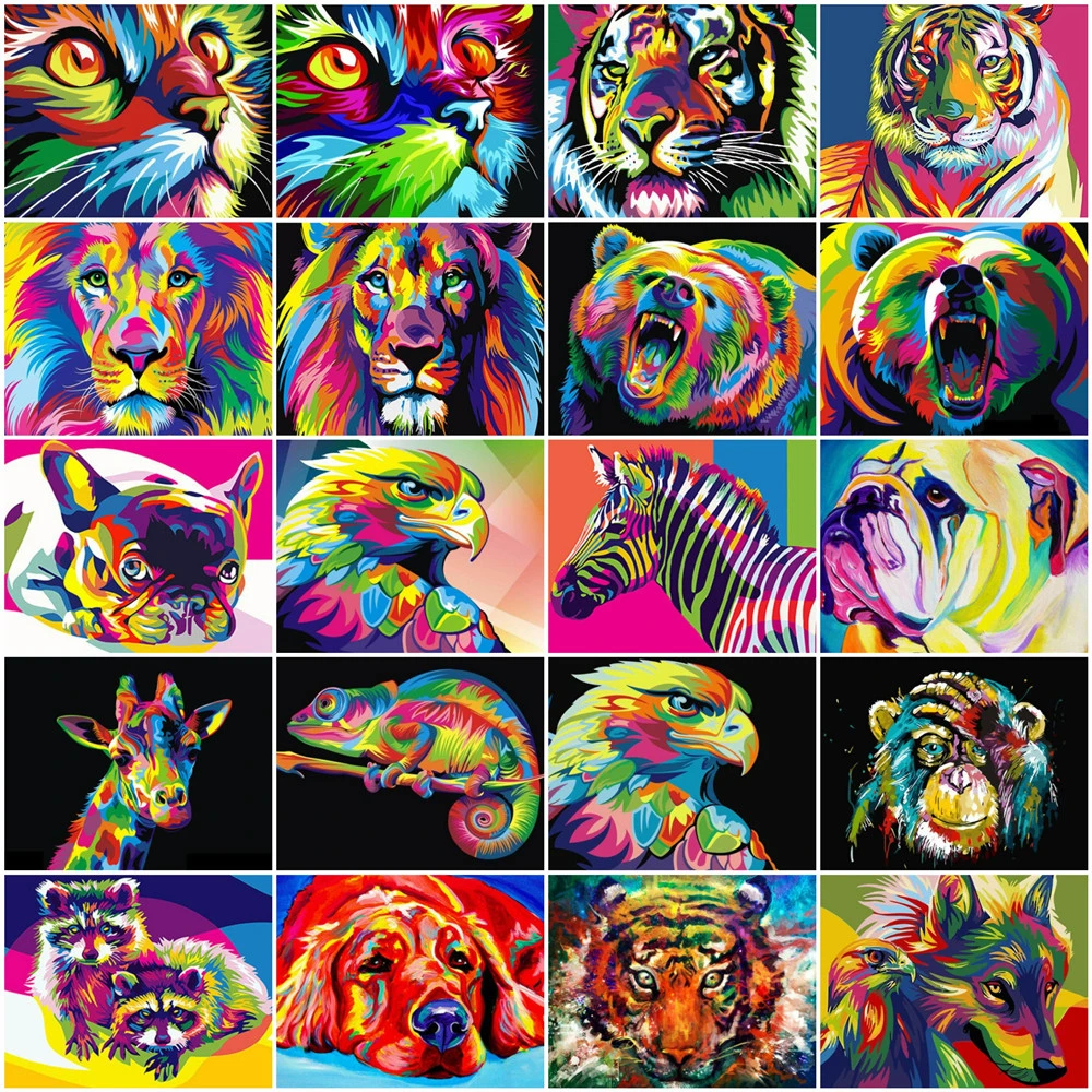 HUACAN фотографии по номерам животного Рисунок живопись на холсте Р...