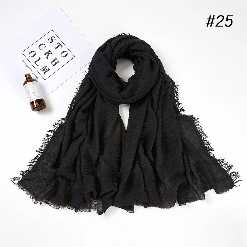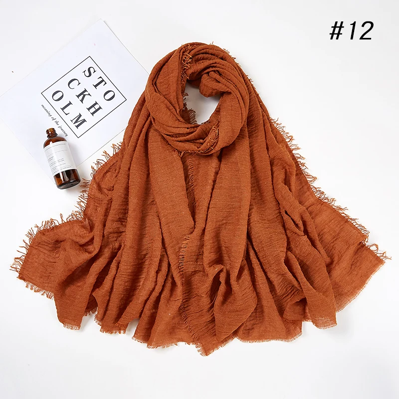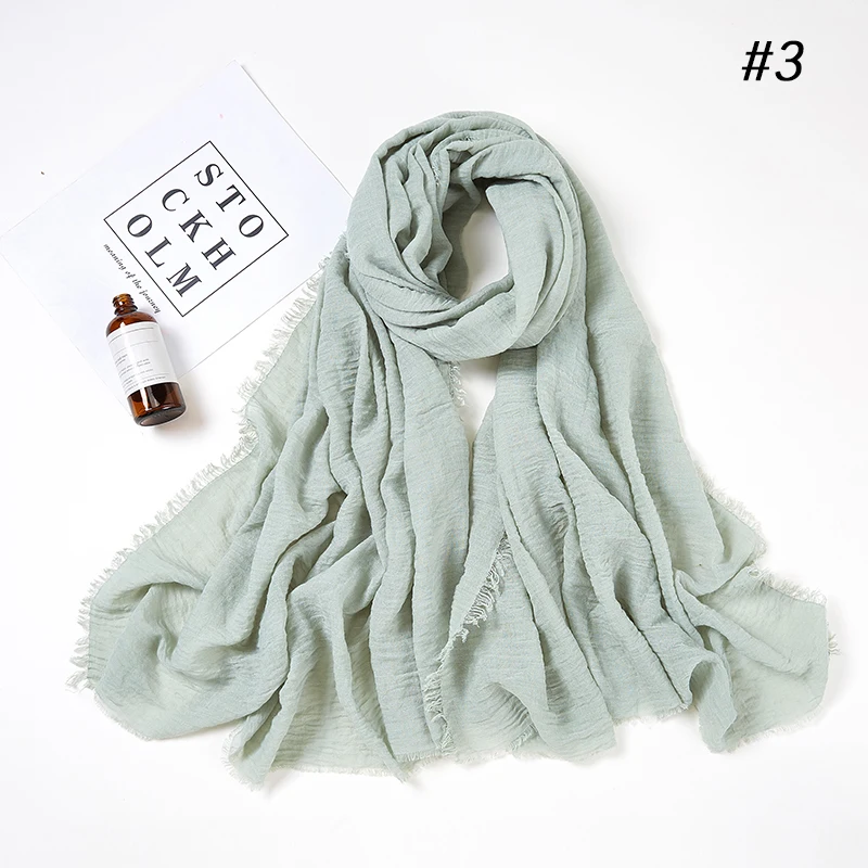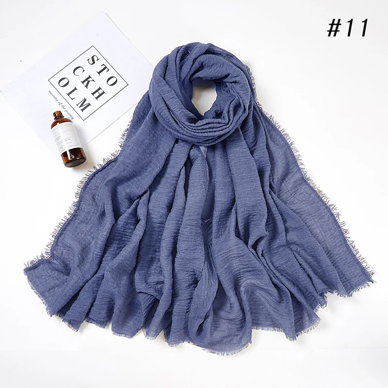 Оптовая продажа, толстые Пузырьковые простые хлопковые бахромы, женские мягкие шали Хиджаб, большие пашминовые шарфы, хиджаб, 10 шт.лот