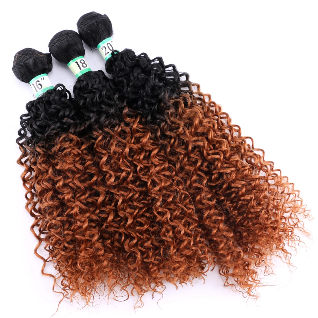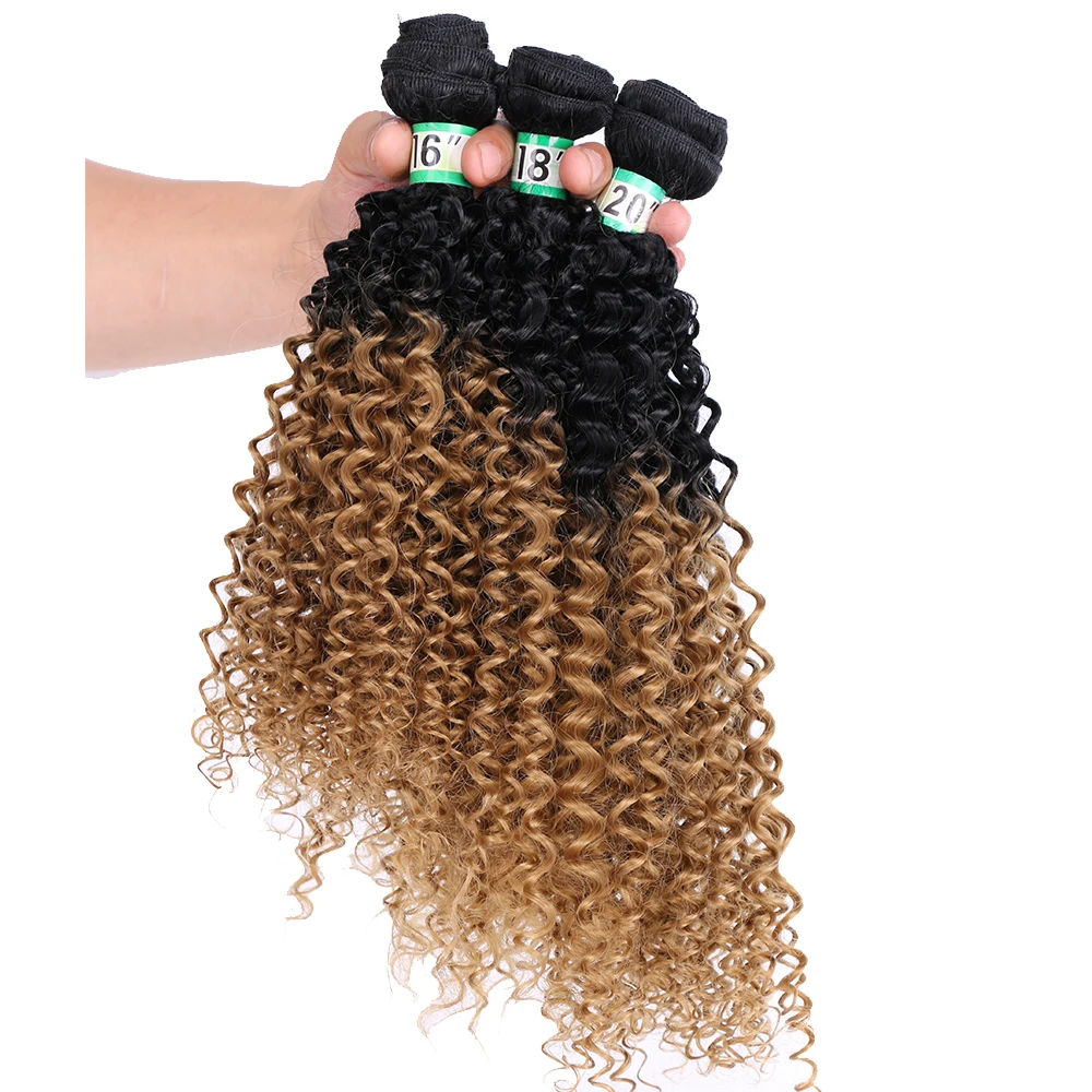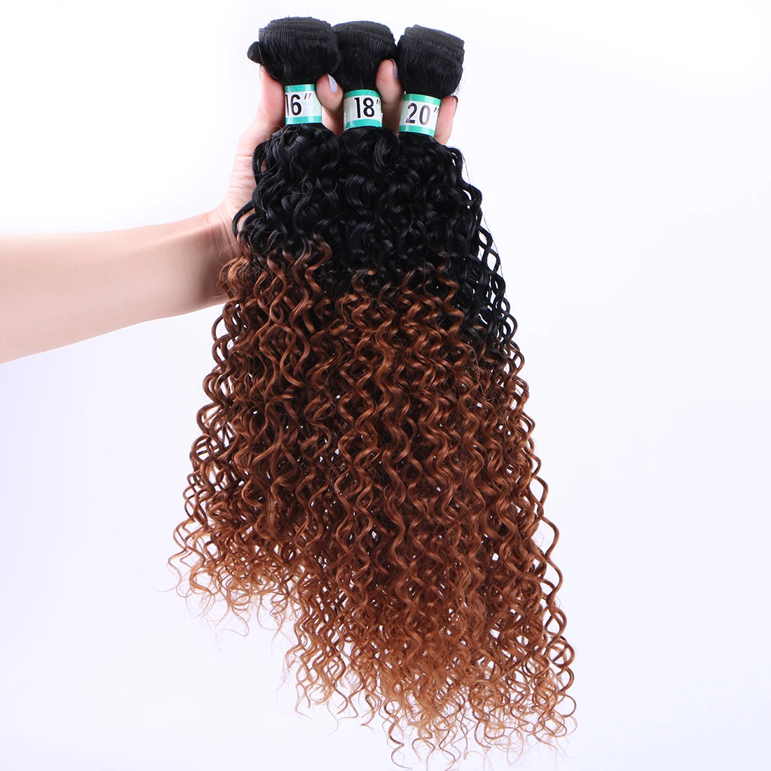 Черно-коричневый цвет Омбре 70 гшт. афро кудрявые вьющиеся пряди ках высокотемпературные синтетические волосы для наращивания для черных женщин