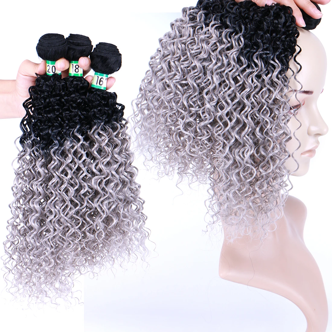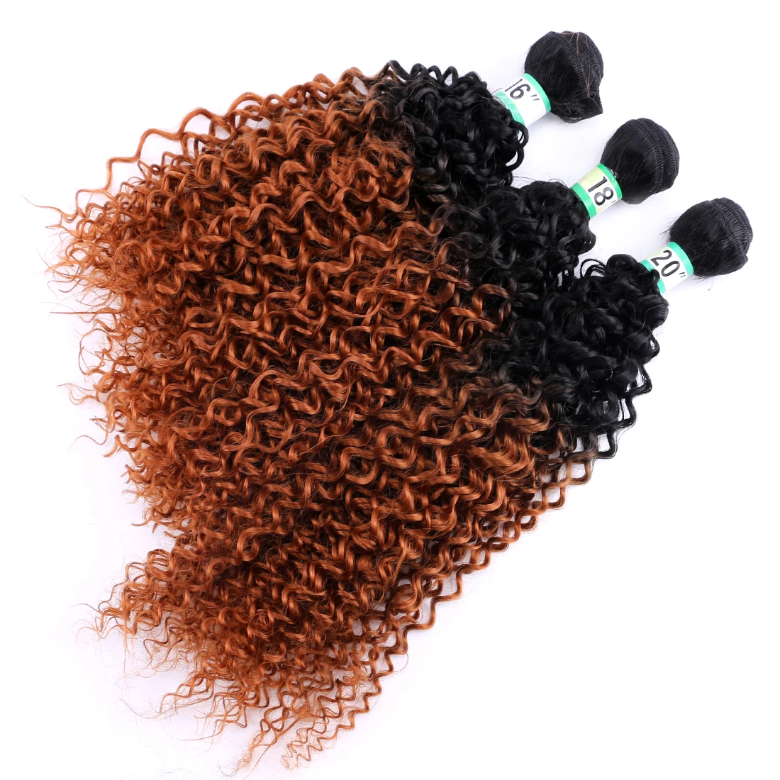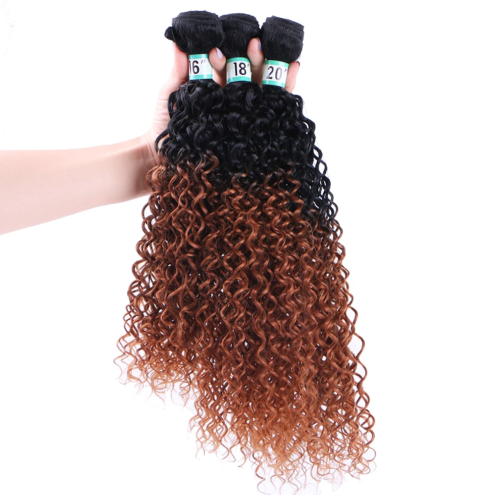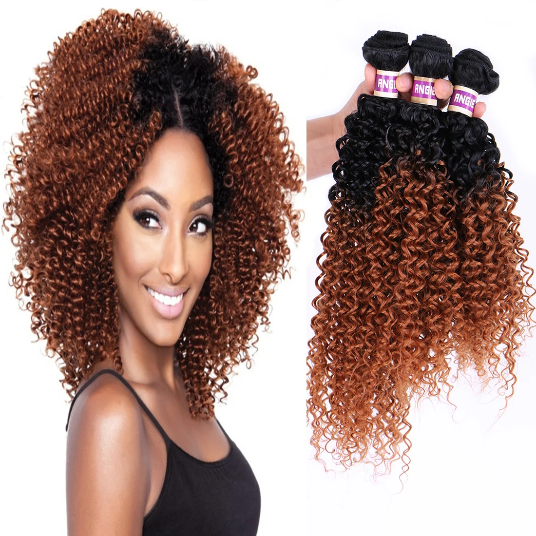 Черно-коричневый цвет Омбре 70 гшт. афро кудрявые вьющиеся пряди ках высокотемпературные синтетические волосы для наращивания для черных женщин