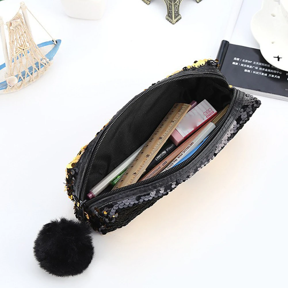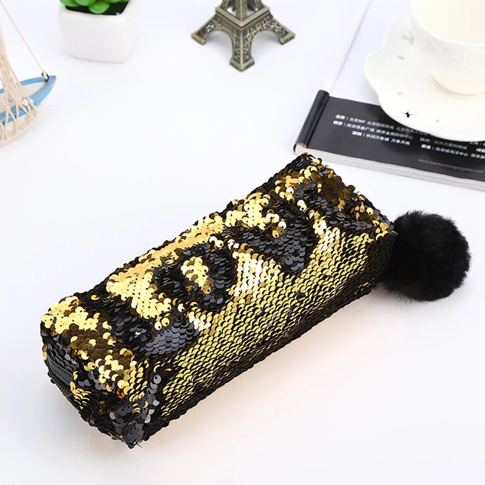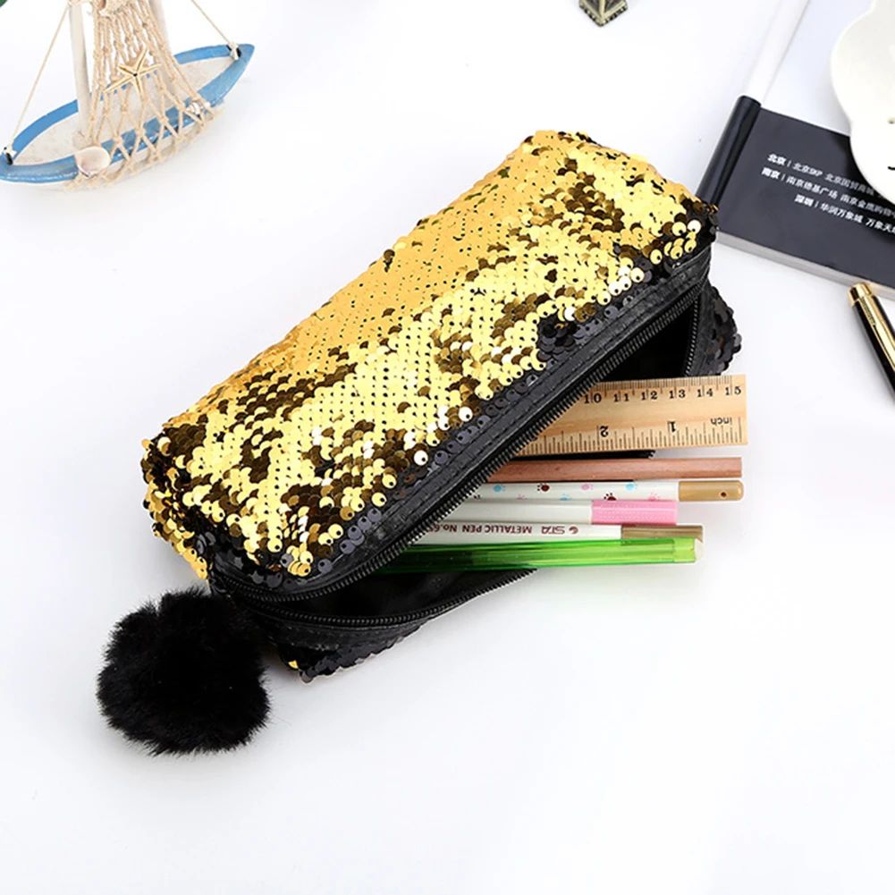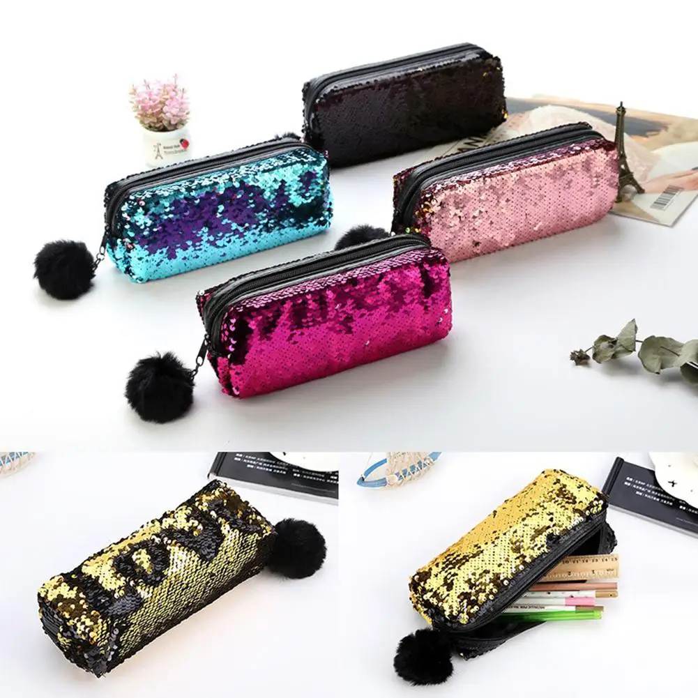 Блестящие сумки-карандаши Реверсивные блестки коробка для ручек и карандашей чехол пушистый органайзер для Бала Сумка-карандаш на молнии пенал школьный