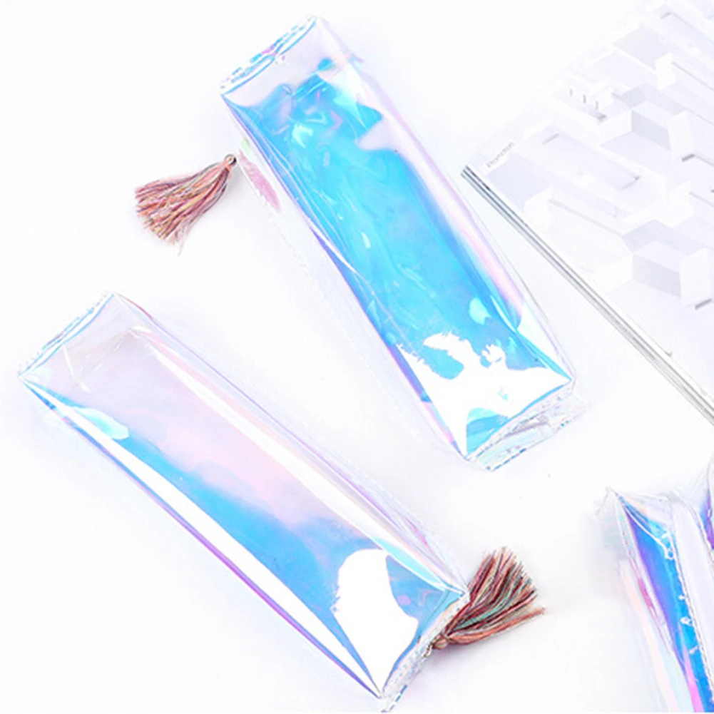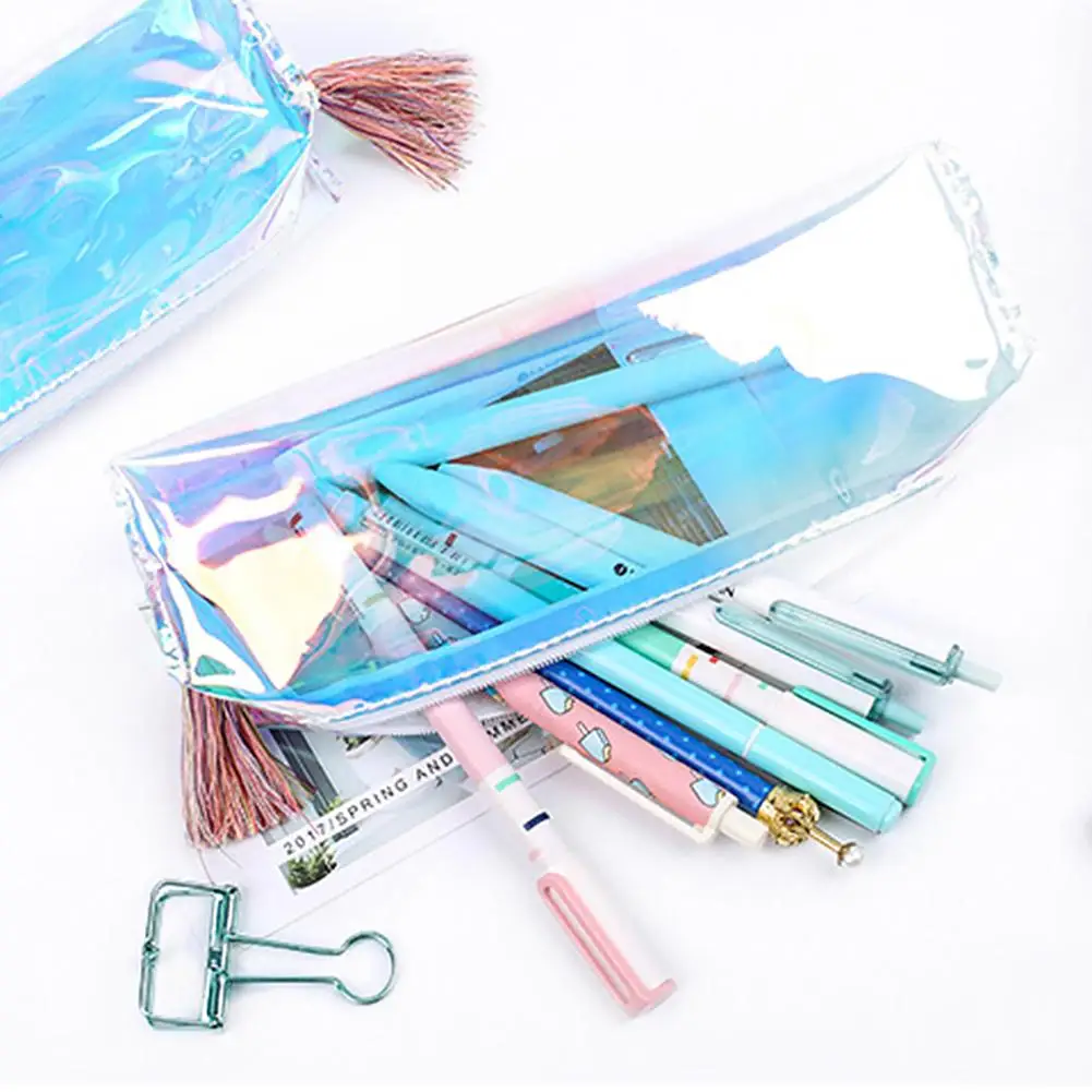 Прозрачный милый большой пенал школьный Блестящий двусторонний блестящий чехол для телефона пушистая Фотосумка на молнии