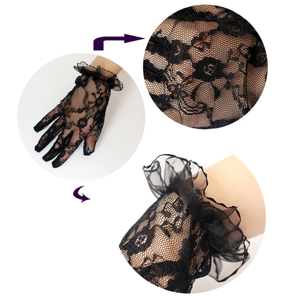 Сексуальные кружевные сетчатые перчатки для женщин, Летние черные ж...