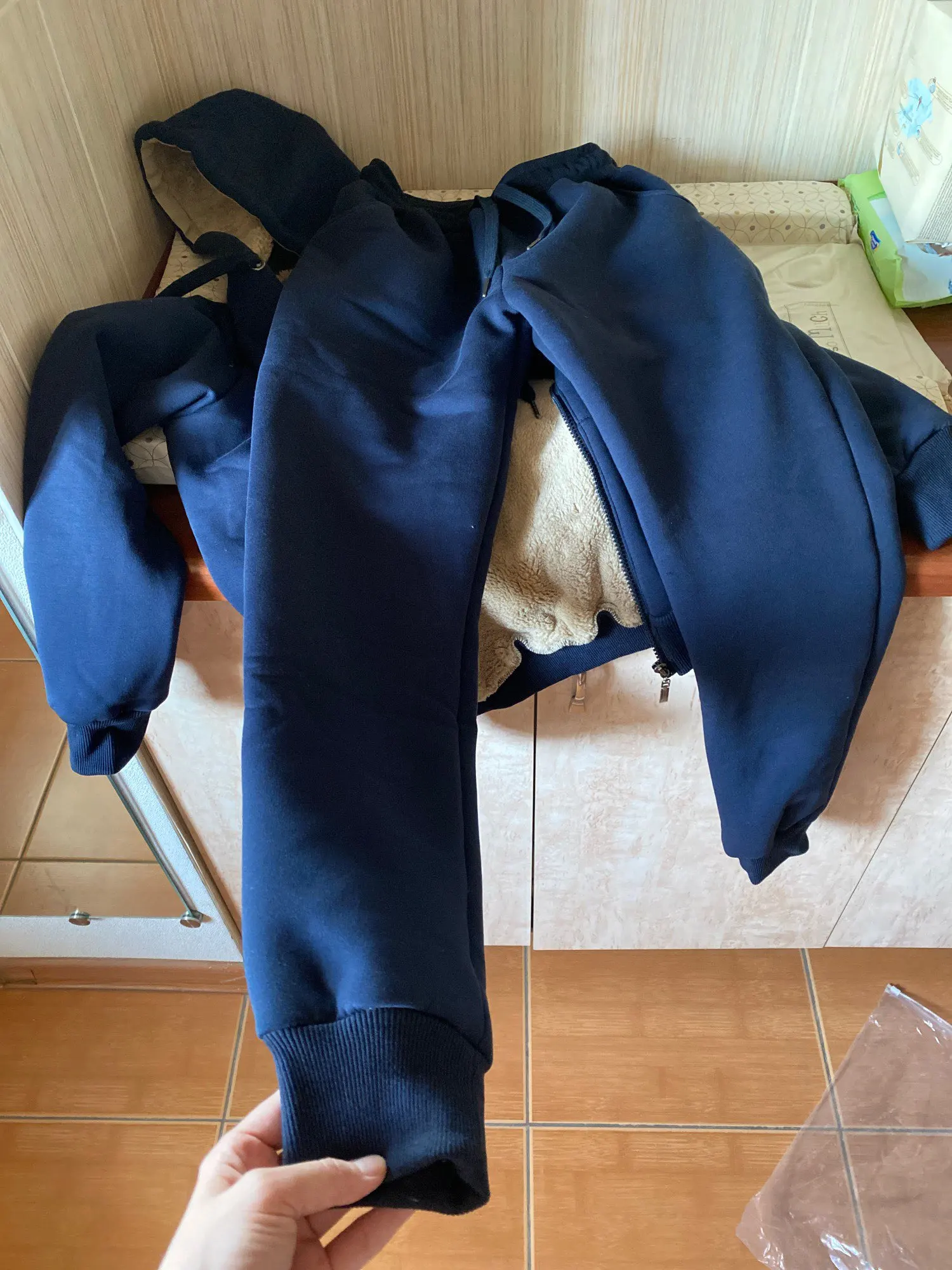 Супер костюм. Очень качественный. Теплая шерстка внутри. На российский 42 и рост 165 размер м подошел идеально. Спасибо продавцу, быстро отправил))