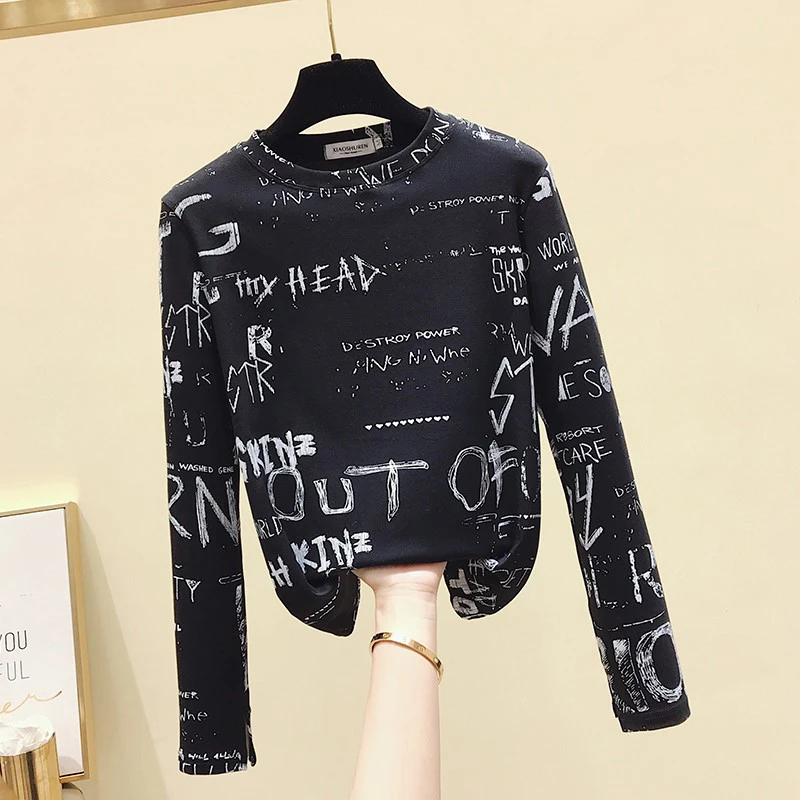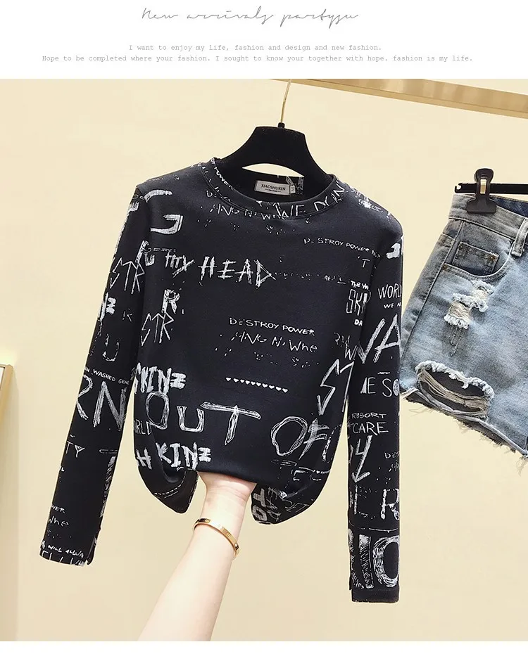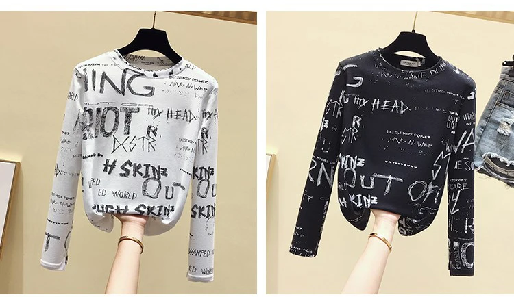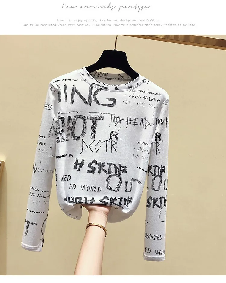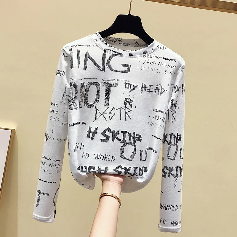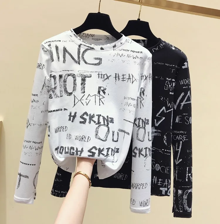 Футболка женская эластичная, с буквенным принтом, весна-лето 2020