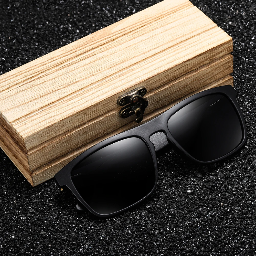 Мужские солнцезащитные очки с бамбуковыми дужками, в деревянной кор...