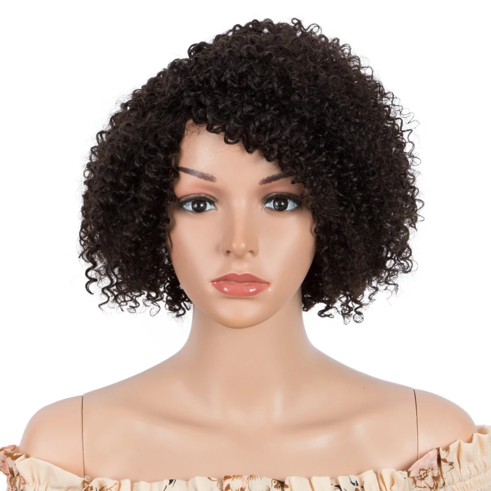 Sleek парики из натуральных волос для Для женщин короткий завиток, короткая стрижка, парик 100% несекущиеся бразильские вьющиеся волосы Remy афро парик из бразильских курчавых, выше щиколотки из натурального материала; Парики с кудрями