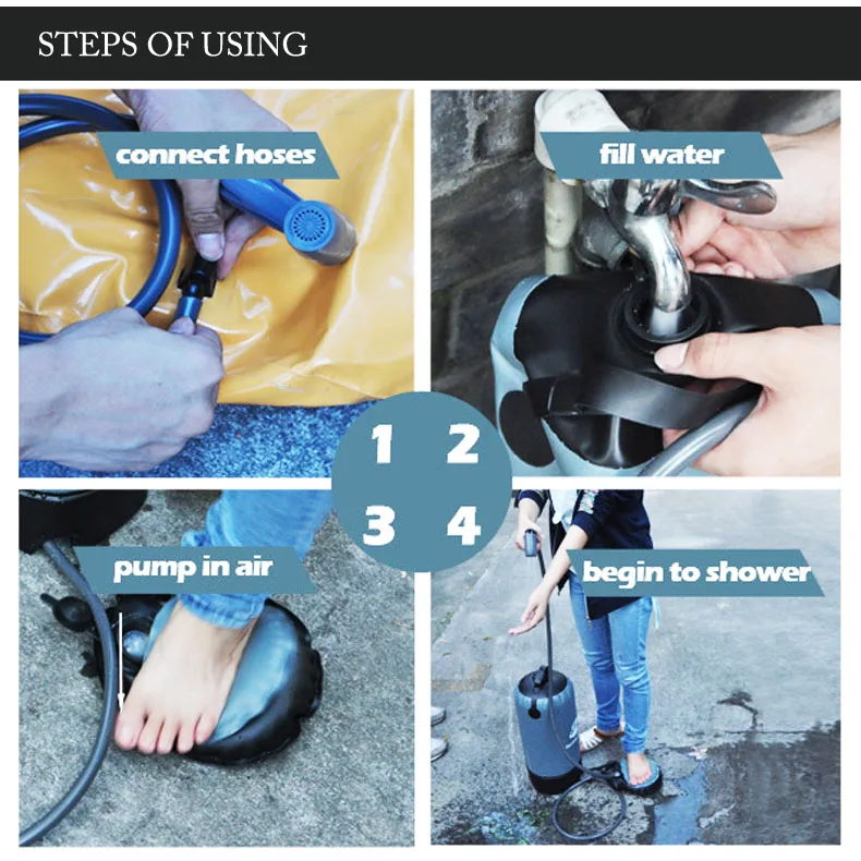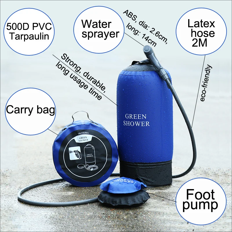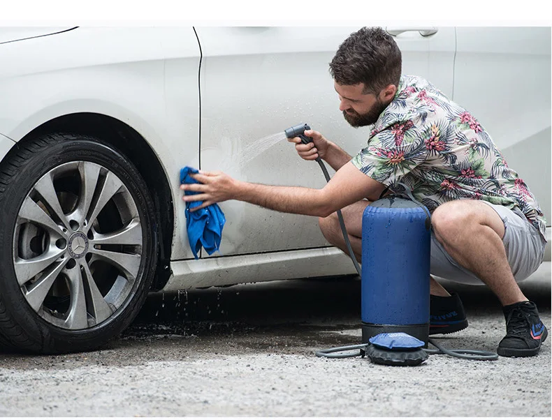 Надувная переносной походный душ для душа, легкий надувной мешок 12 л с ножным насосом, из ПВХ, для мытья автомобилей, инструментов