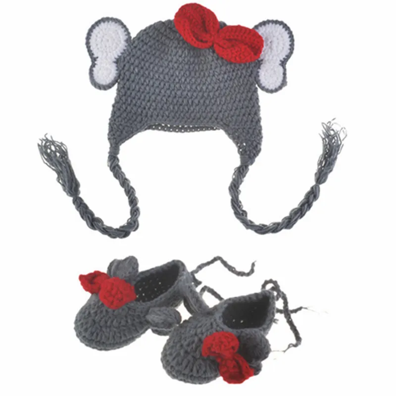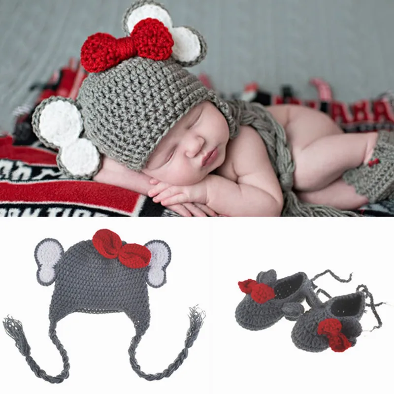 2 шт.компл. новорожденных Подставки для фотографий крючком слон длинная коса шляпа и обувь комплект одежды для малышей