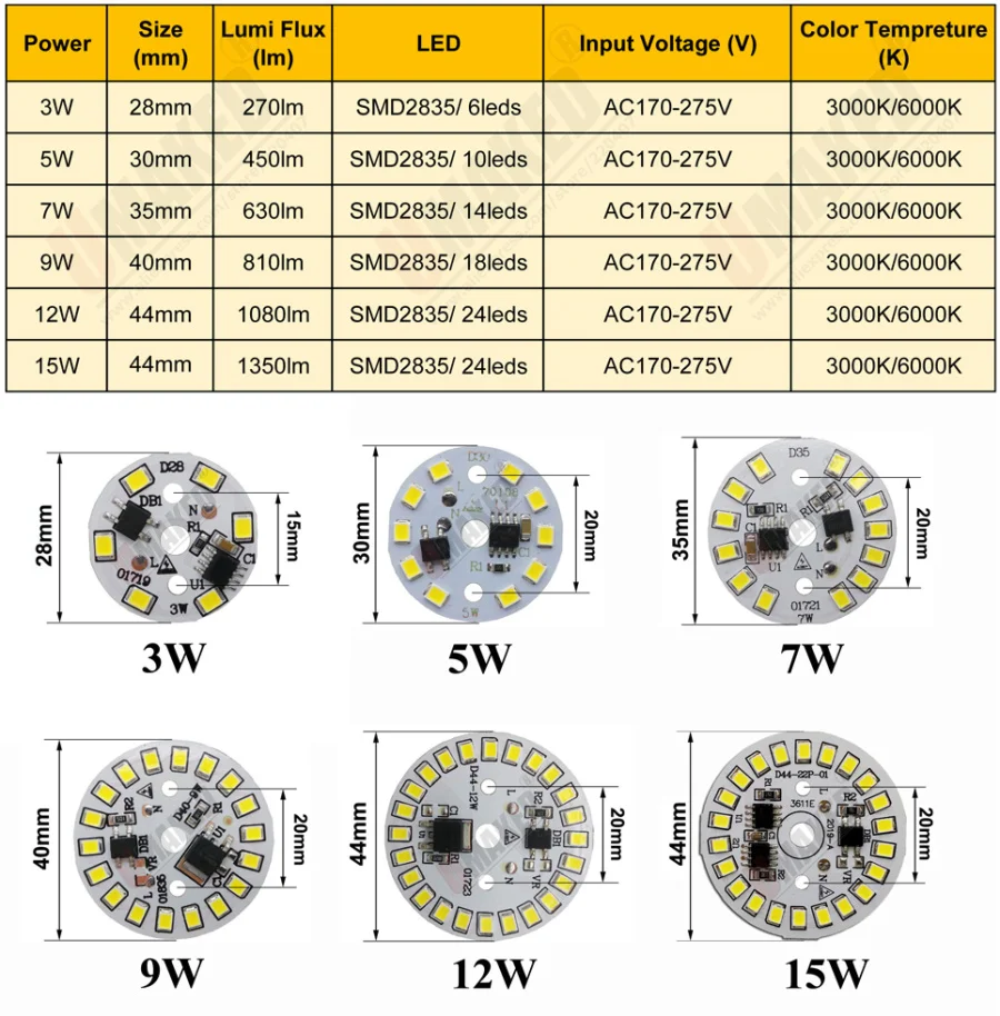 Светодиодная печатная плата 9 Вт, 40 мм, 220 В переменного тока, smd2835, с кабелем 20 см, светодиодный шарик, умный Драйвер IC для лампы, 3 Вт 5 Вт 7 Вт 12 Вт 15 Вт, источник направленного светильник
