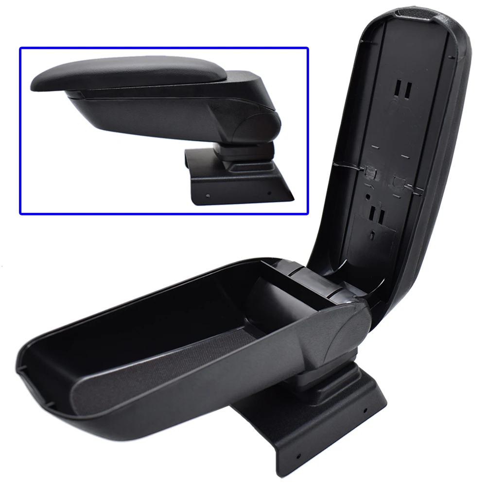 Технические характеристики:1. Отделка из качественного пластика с верхней черной эко-кожей2. Роторное открытие и закрытие структуры хранения3. Простая установка между передними автокреслами, может скользить вперед