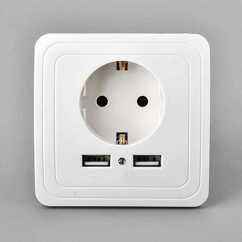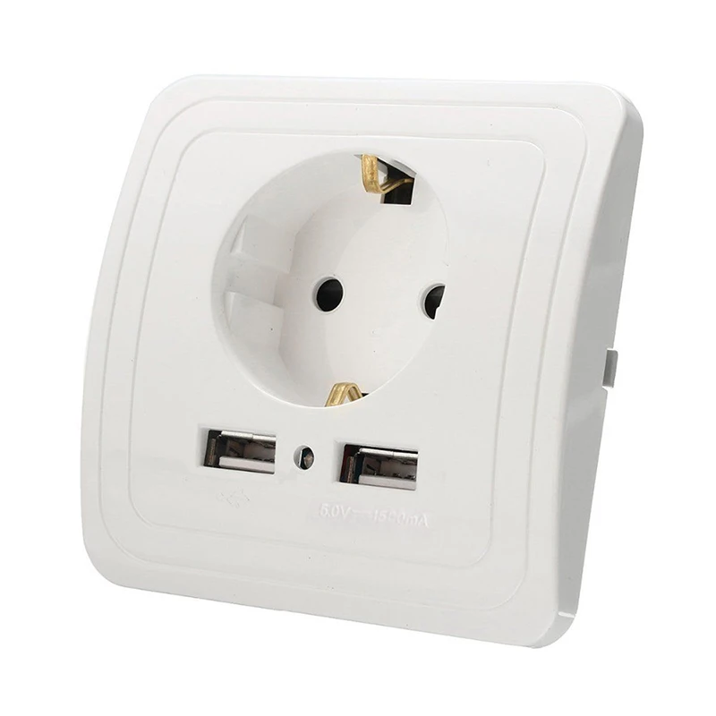 Электрические розетки с европейской вилкой, 2 USB-порта, безопасное Сетевое зарядное устройство переменного тока, аксессуары, розетка, адаптер