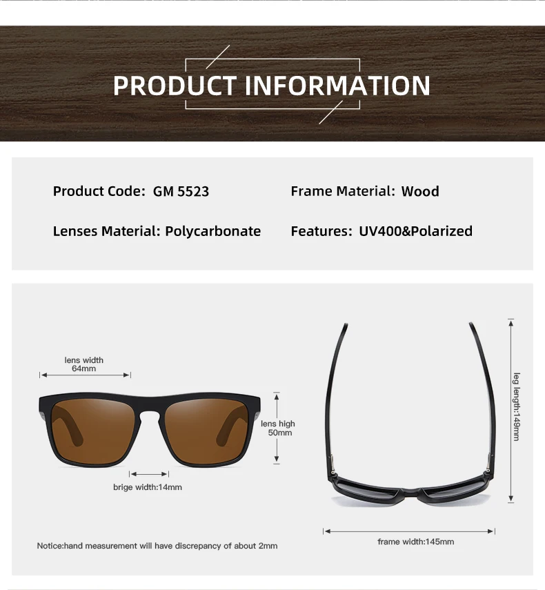 Мужские и женские деревянные очки ручной работы GM, брендовые поляр...