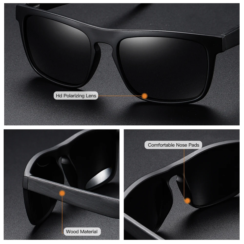 Мужские солнцезащитные очки с деревянными дужками, в квадратной оправе