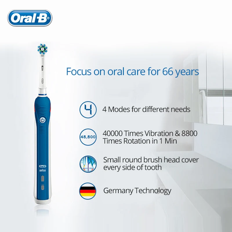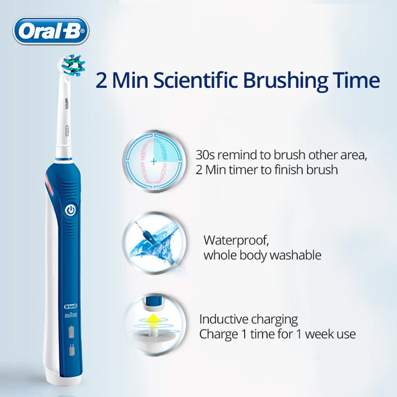 Oral B Ультразвуковая электрическая зубная щетка Pro4000 3D Smart Tooth отбеливающая перезаряжаемая зубная щетка для взрослых Водонепроницаемая удаление пятен
