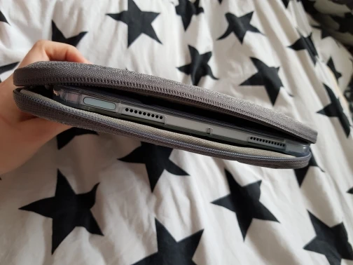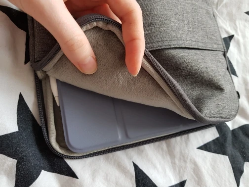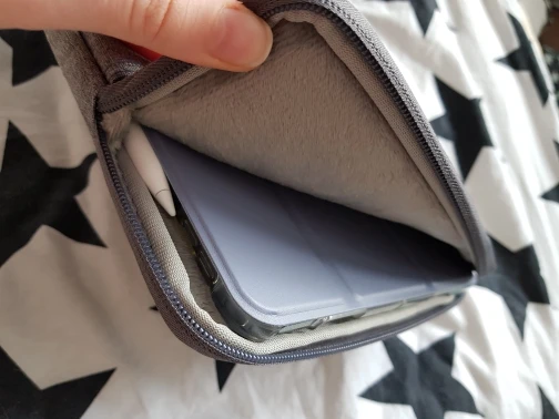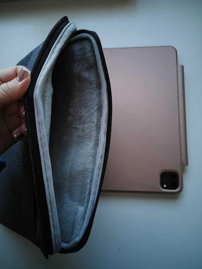 Llegó rápido, tiene buen aspecto y un bolsillo exterior amplio, el iPad 10.2 cabe perfectamente (de hecho le sobra algo) pero si tenéis una carcasa ojo, yo puedo meter la Logitech Combo Touch pero sin el teclado. Por dentro es un tejido suave que debería proteger bien de roces.