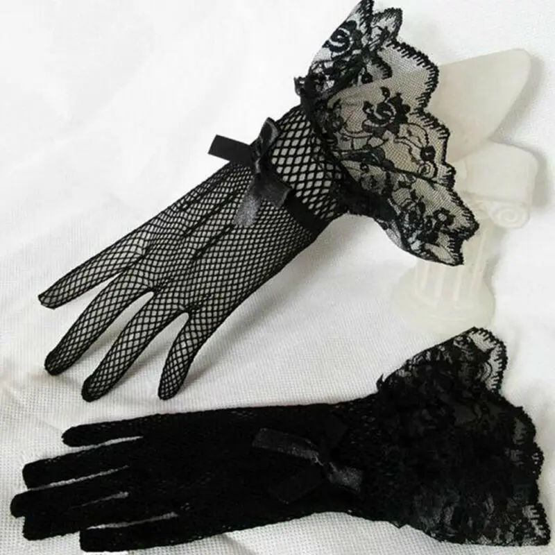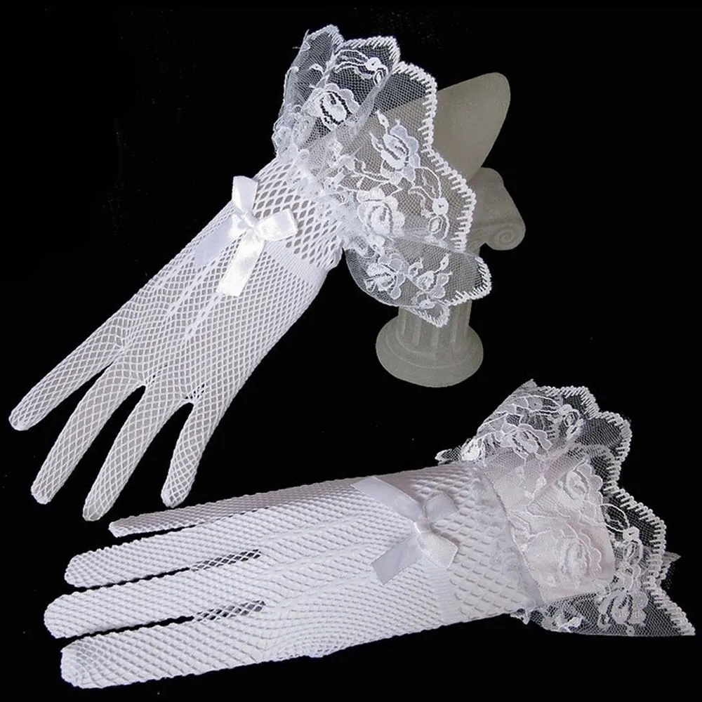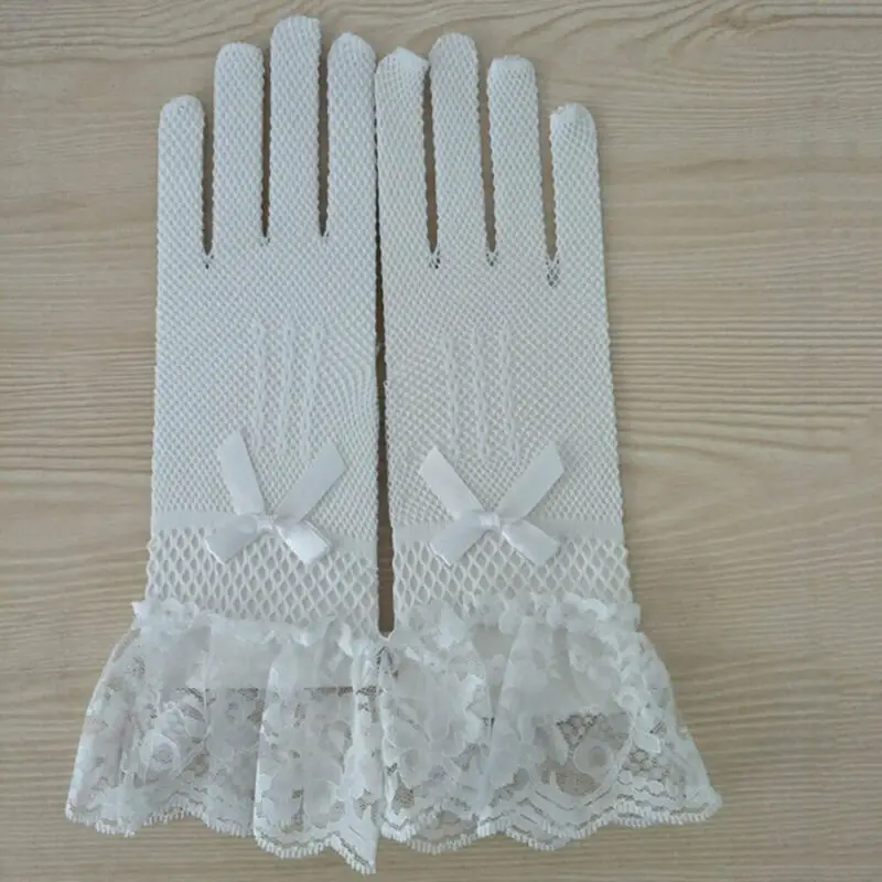 Перчатки женские сетчатые в сеточку, 1 пара, сексуальный кружевной с бантом запястье, летние солнцезащитные, для вождения, вечерние, вечерние, черные, белые