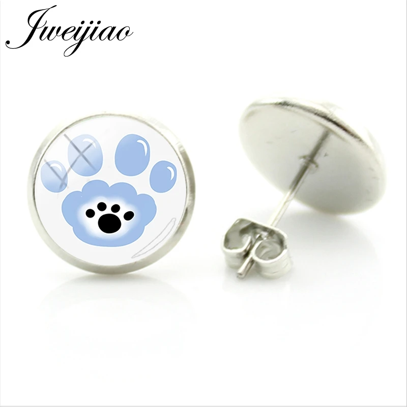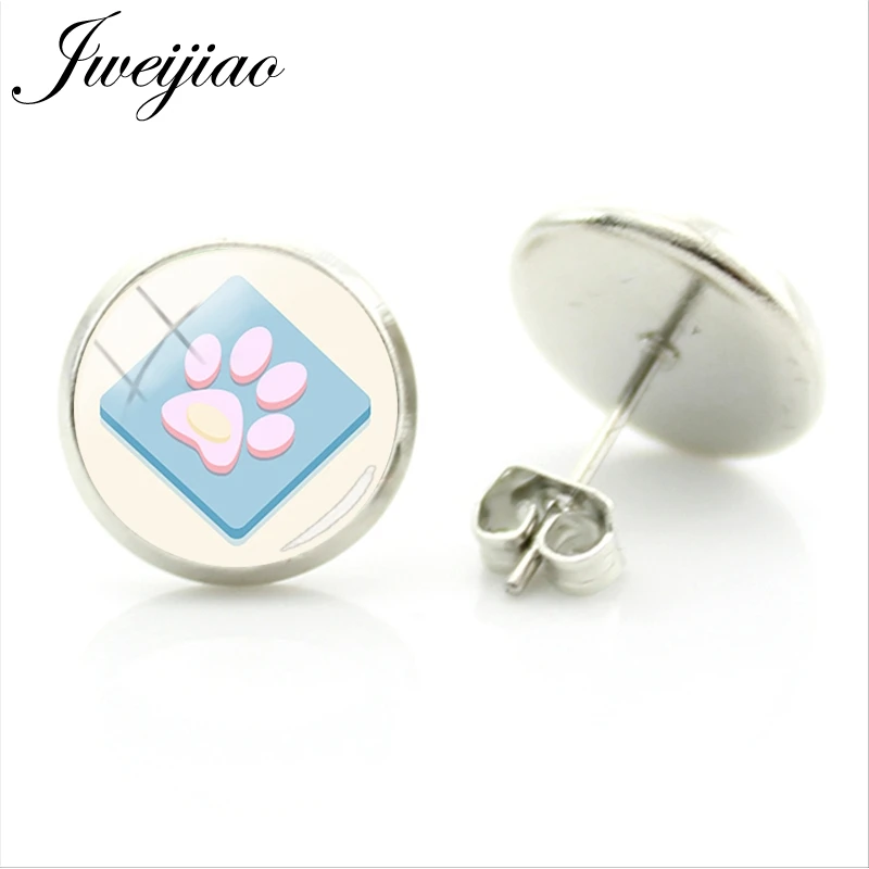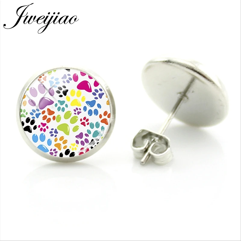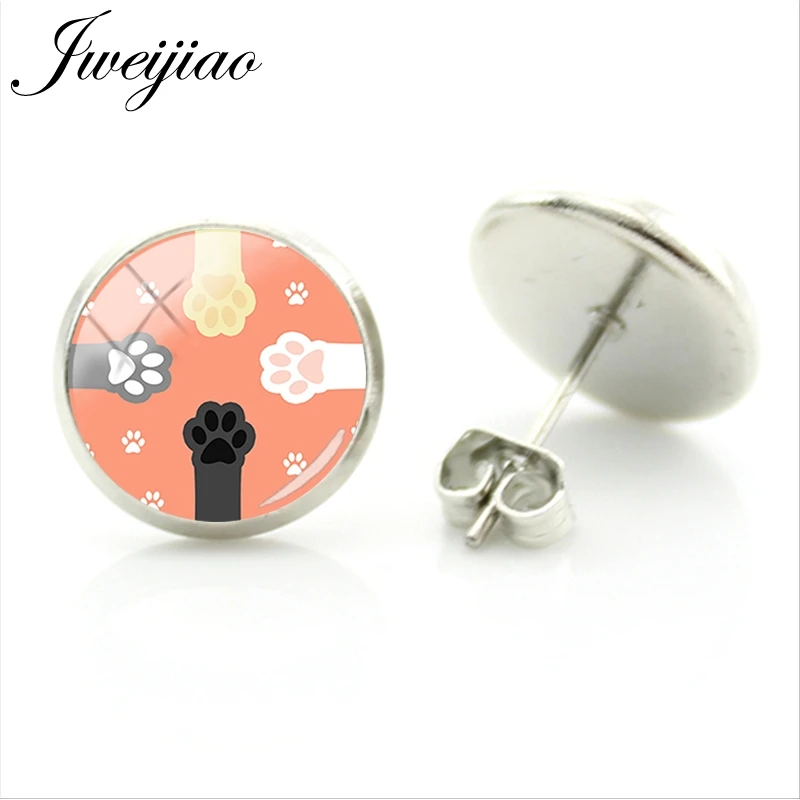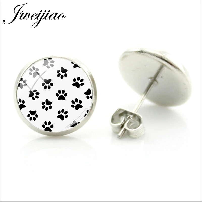 JWEIJIAO круглые серьги-гвоздики с изображением лап животных собаки 12 мм стеклянный кабошон фотоэлемент для девочек Подарки на день рождения ювелирные изделия NT313