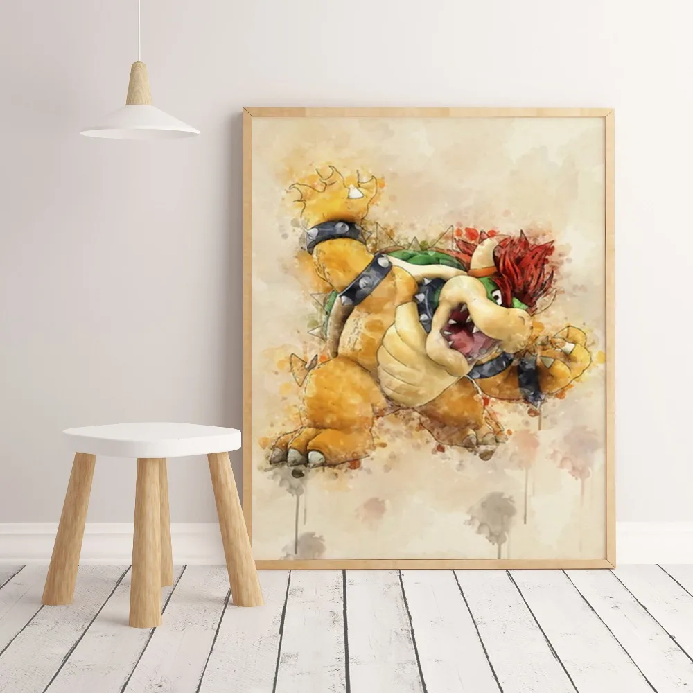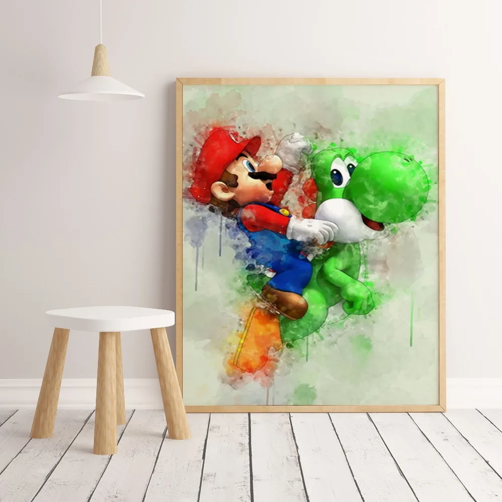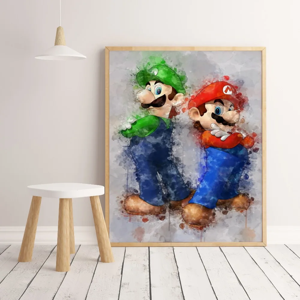Плакат с изображением Марио, украшение для дома, холст высокого качества, постер с акварелью, домашний декор для детской комнаты
