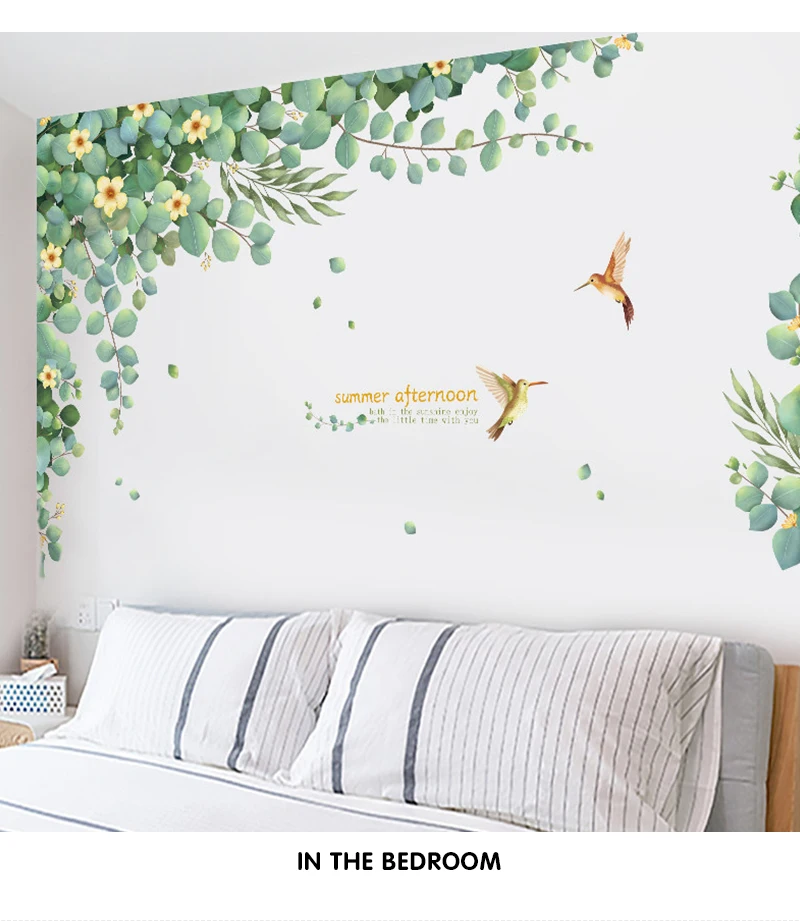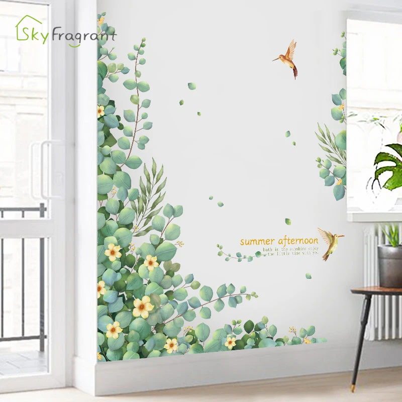 Креативная Настенная Наклейка для гостиной, Настенный декор, самоклеящаяся наклейка s, декор для спальни, свежие зеленые растения, украшение для комнаты, домашний декор
