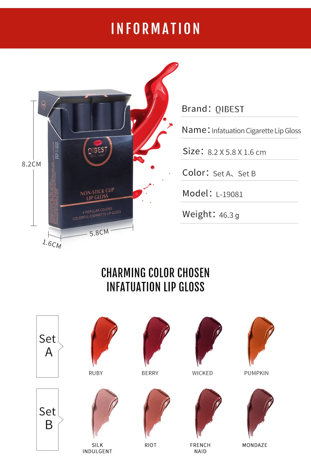 4 шт.компл. матовая губная помада бархатная пикантная однотонная обувь Блеск для губ косметический набор тинт для губ блеск для губ Водонепроницаемый губная помада для увлажняющий бальзам для губ блеск для губ