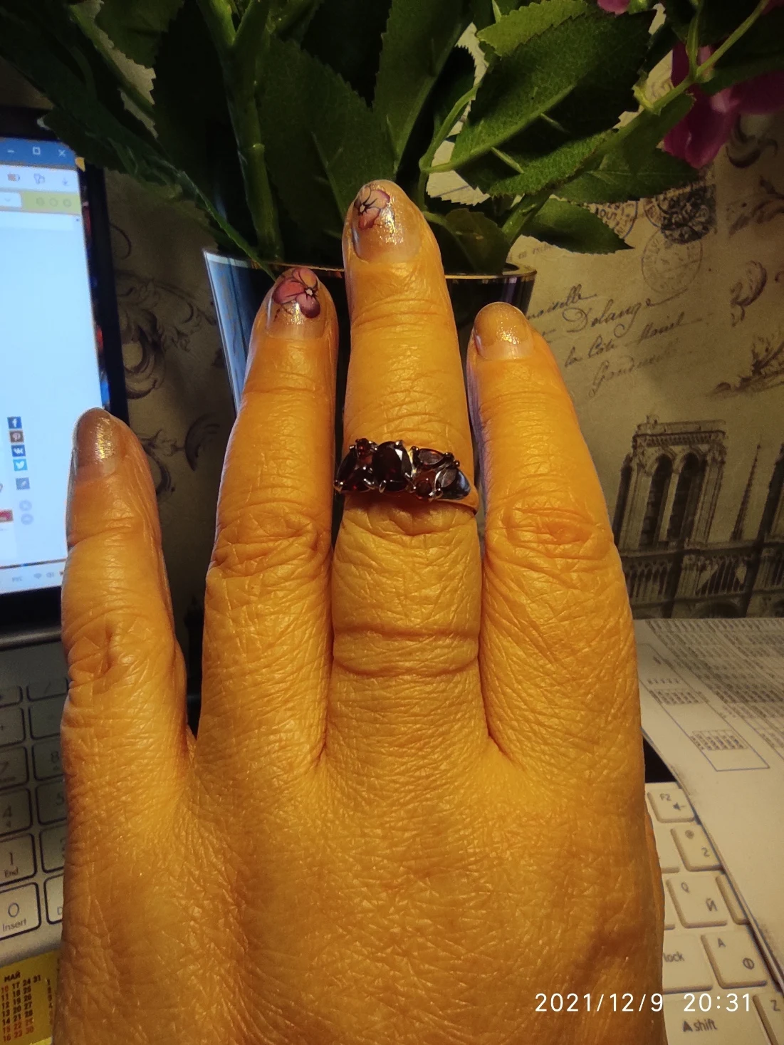 Кольцо SOKOLOV из золочёного серебра с гранатами, Серебро, 925, Жен...
