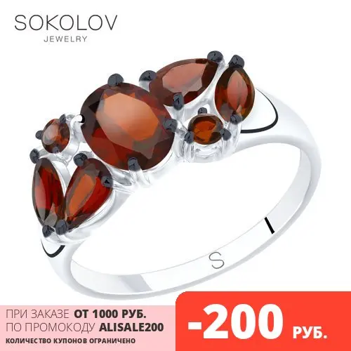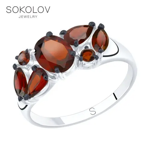 Кольцо SOKOLOV из серебра с красными гранатами, Серебро, 925, Женск...
