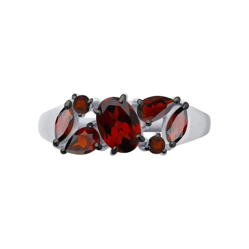 Кольцо SOKOLOV из серебра с гранатами и красными фианитами, Серебро...