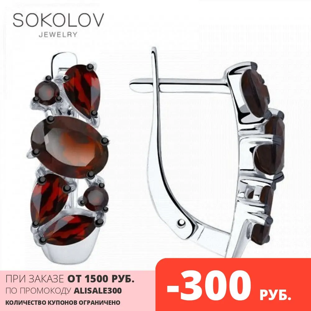 Серьги SOKOLOV из серебра с гранатами, Серебро, 925, Женские, Серьги 2022 тренд, Оригинальная продукция
