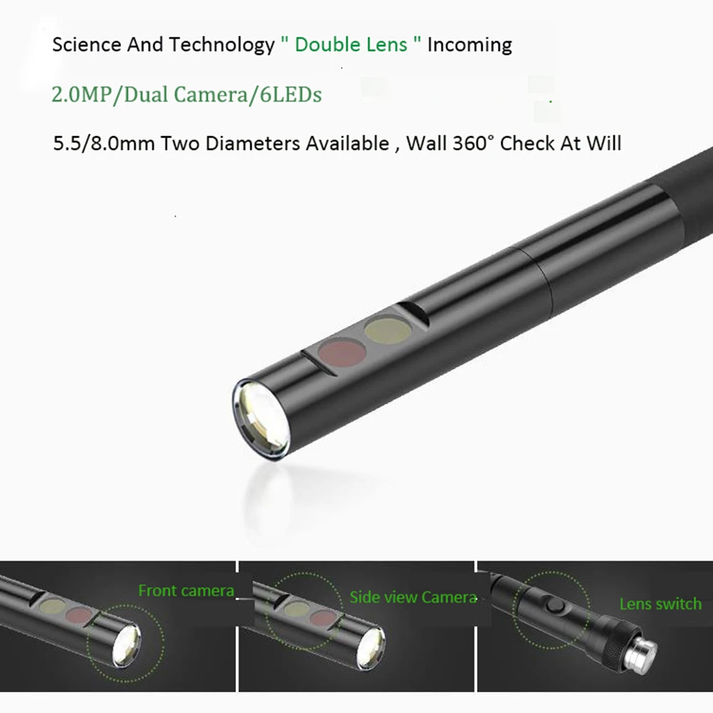 NTS500 5,0 экран 8 мм двойной объектив промышленный эндоскоп IP67 камера 1080P HD труба автомобильный осмотр бороскоп 32 Гб 3500 мАч LI-Battery