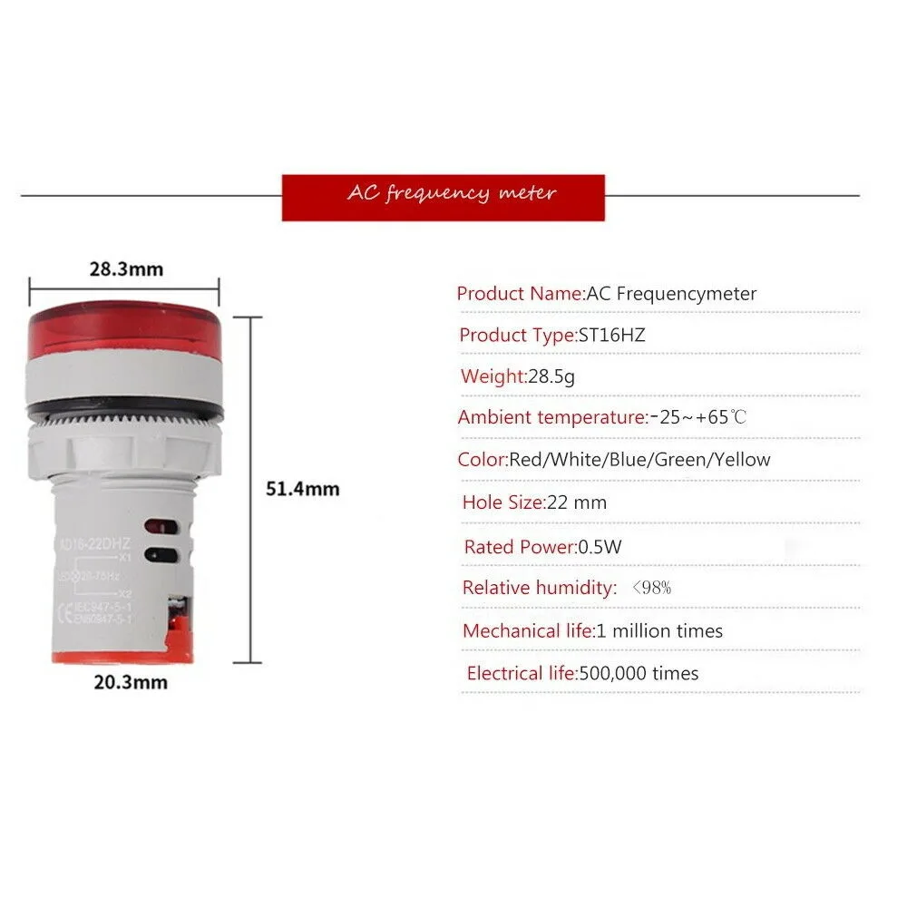 Круглый цифровой дисплей, измеритель частоты, диапазон измерения 0-99 Гц, 22 мм светильник