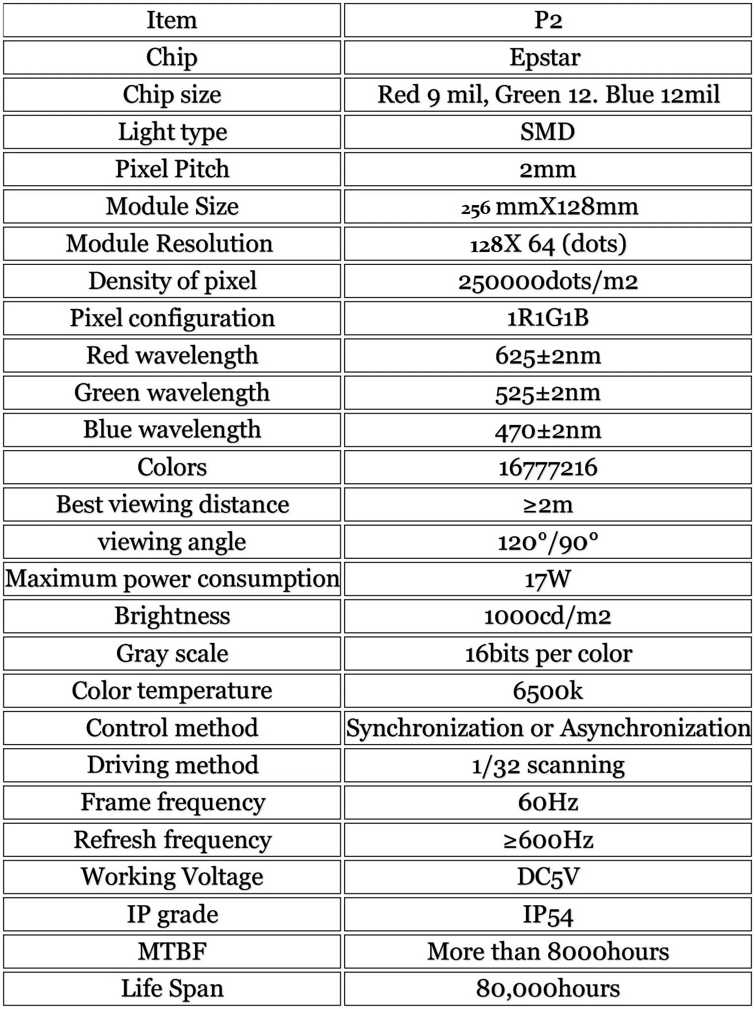 Module size256x128mm