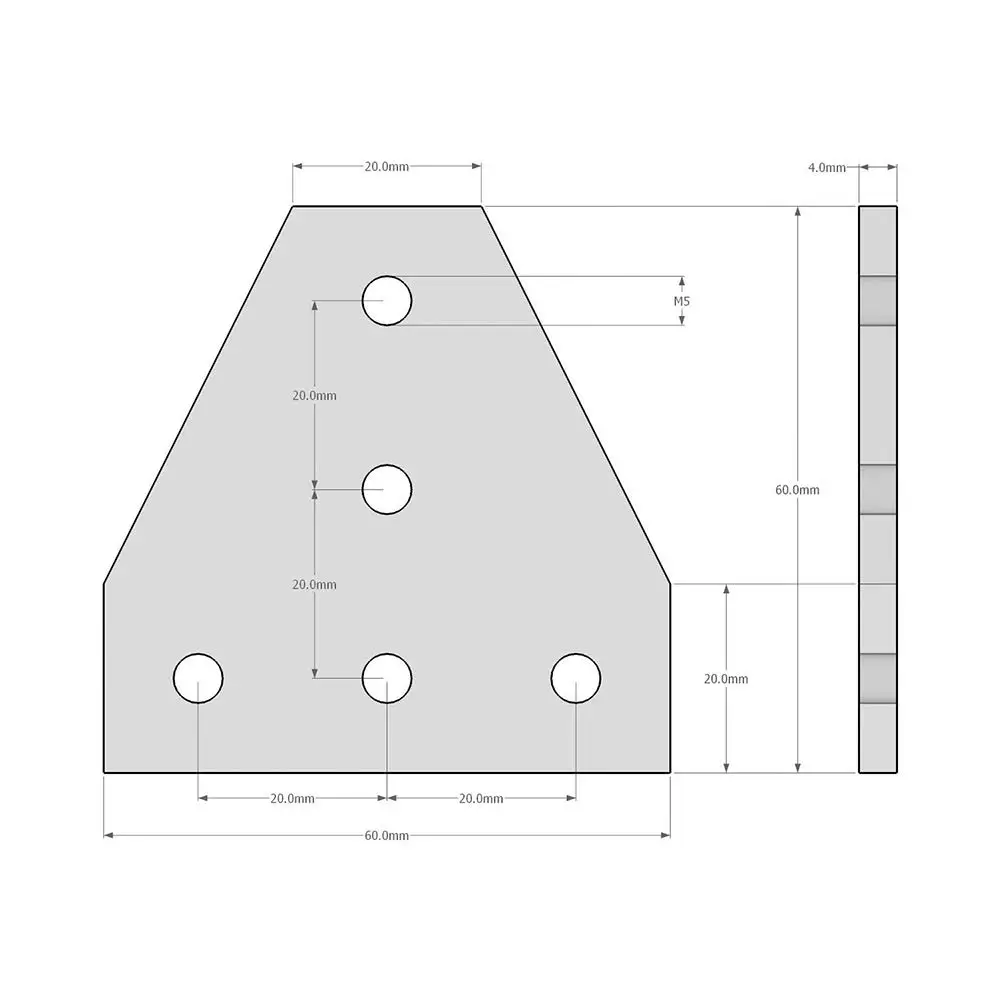 3D-принтер 2 шт.лот, 90 градусов, 60x60x4 мм, тип L с 5 серебряными...