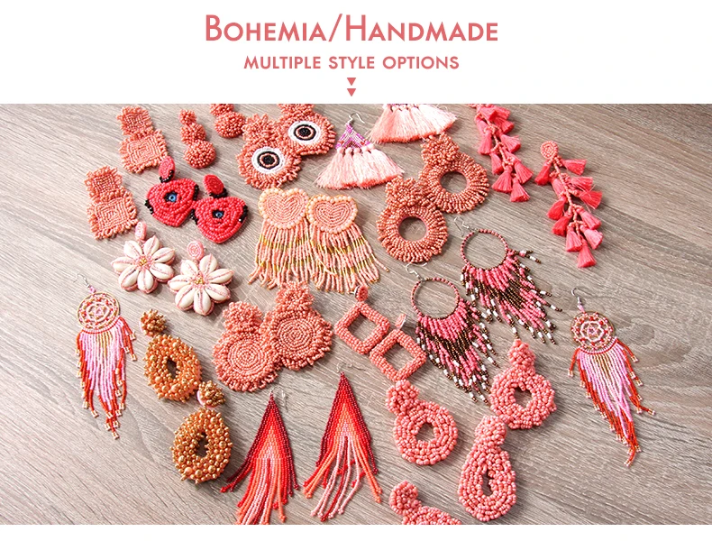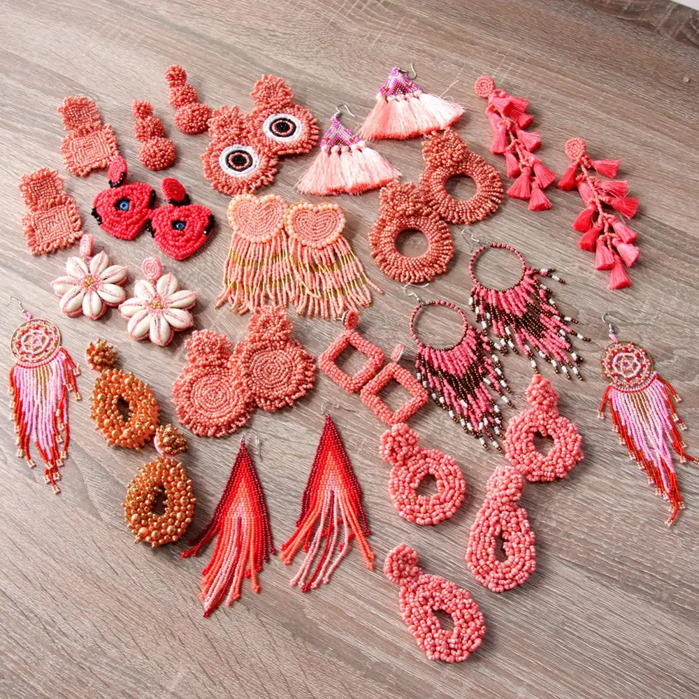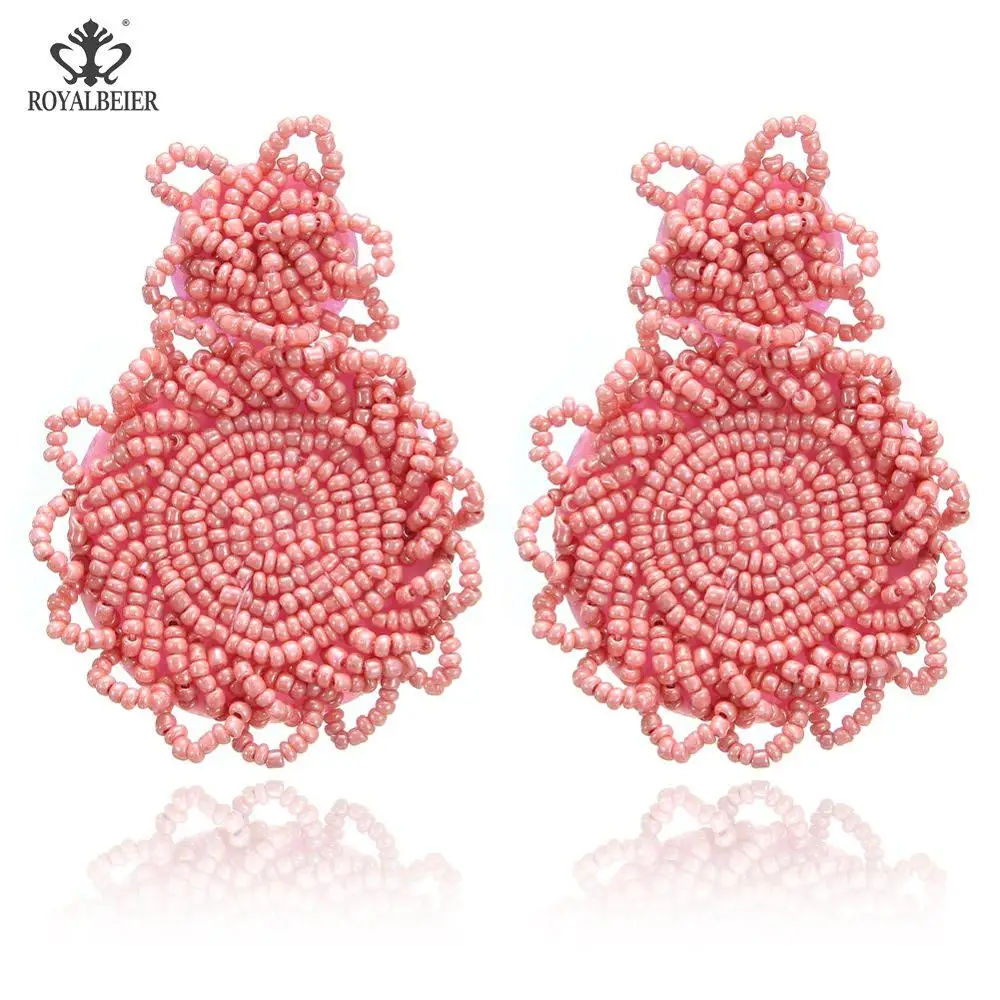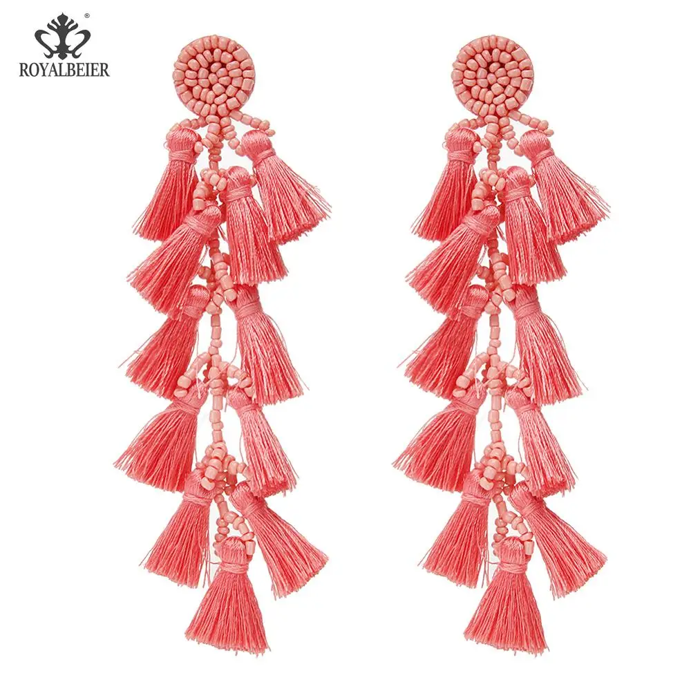 Розовые висячие серьги ROYALBEIER ручной работы с кисточками, Богемские серьги-подвески, из бисера, женские Эффектные серьги, украшения для выпускного вечера