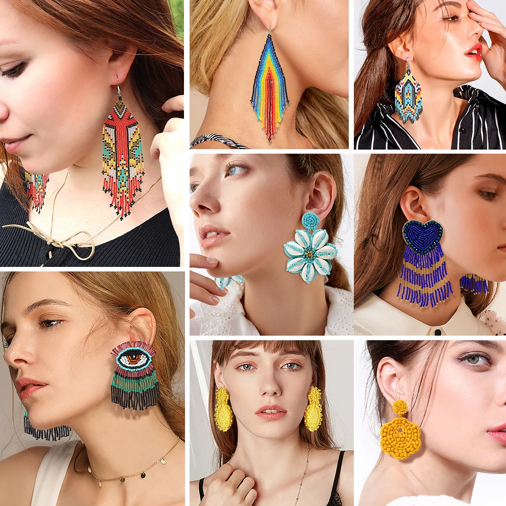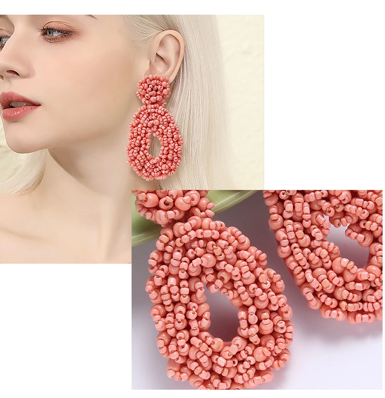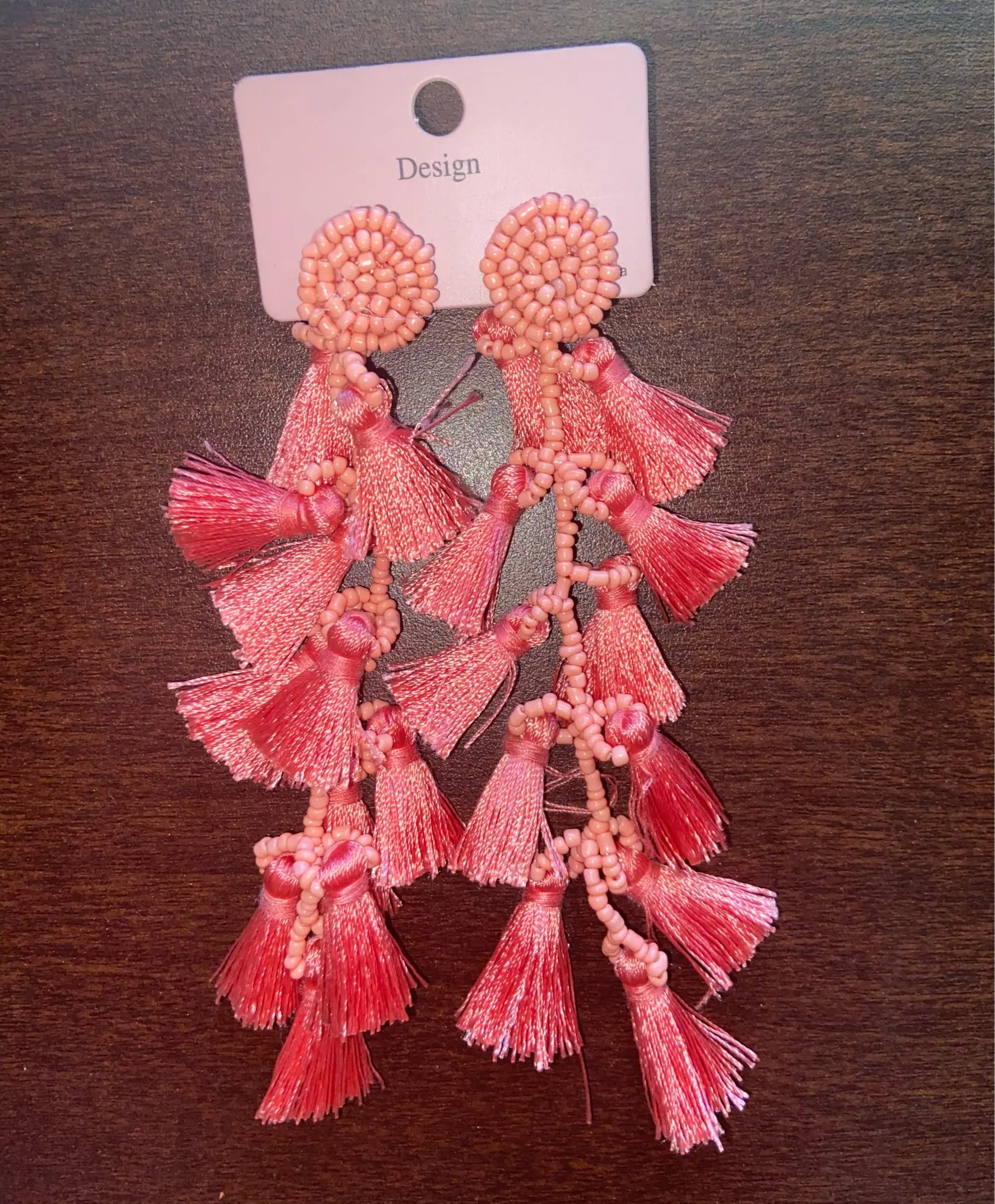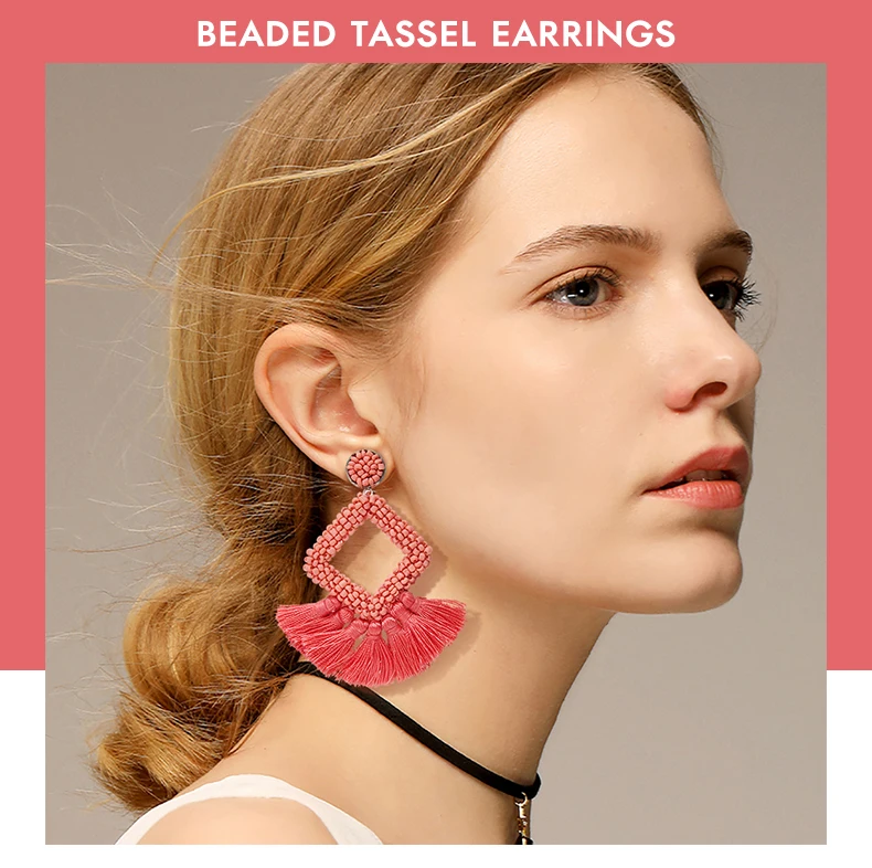 Розовые висячие серьги ROYALBEIER ручной работы с кисточками, Богемские серьги-подвески, из бисера, женские Эффектные серьги, украшения для выпускного вечера