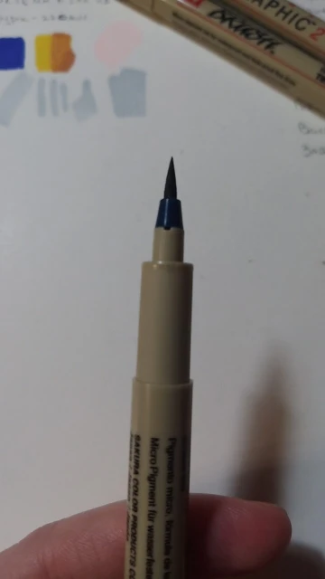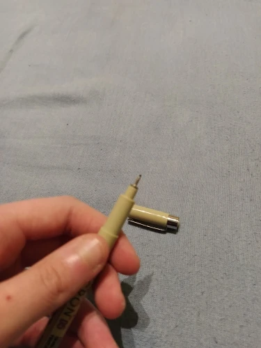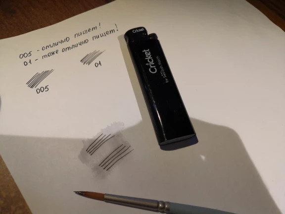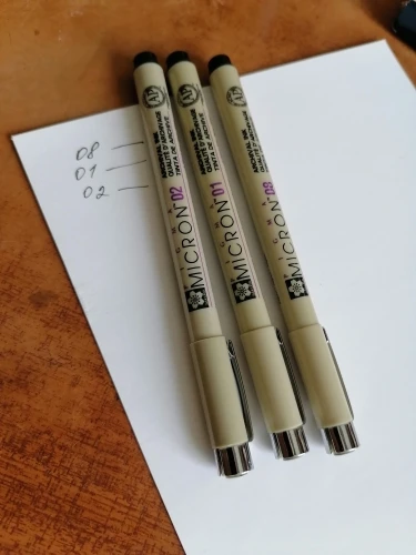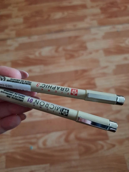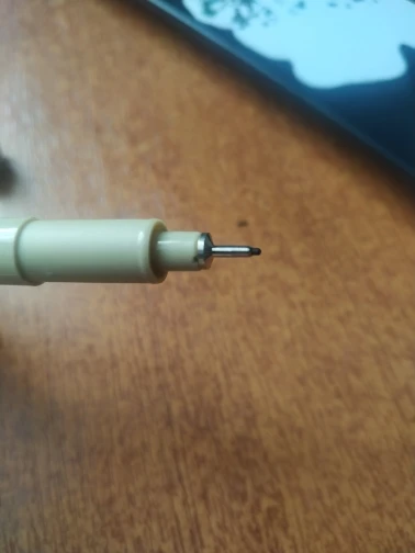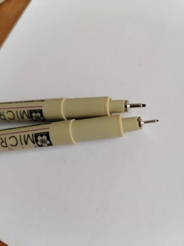 Товар прийшов за три тижні. Все в чудовому стані, не підбито. Фотографія відповідає дійсності. Трохи про ручки. Я замовляла 01 та 005. Пишуть добре, не шкрябають. Колір насичений. Чорнила не розмазуються, тому можна спокійно малювати й терти гумкою без страху змазати малюнок. При взаємодії з водою вода стає темнішою (фотографія 2), тож не рекомендую використовувати з аквареллю. Загалом товар сподобався, художникам рекомендую!