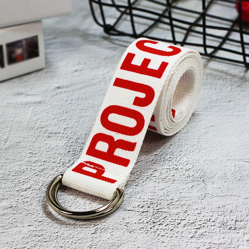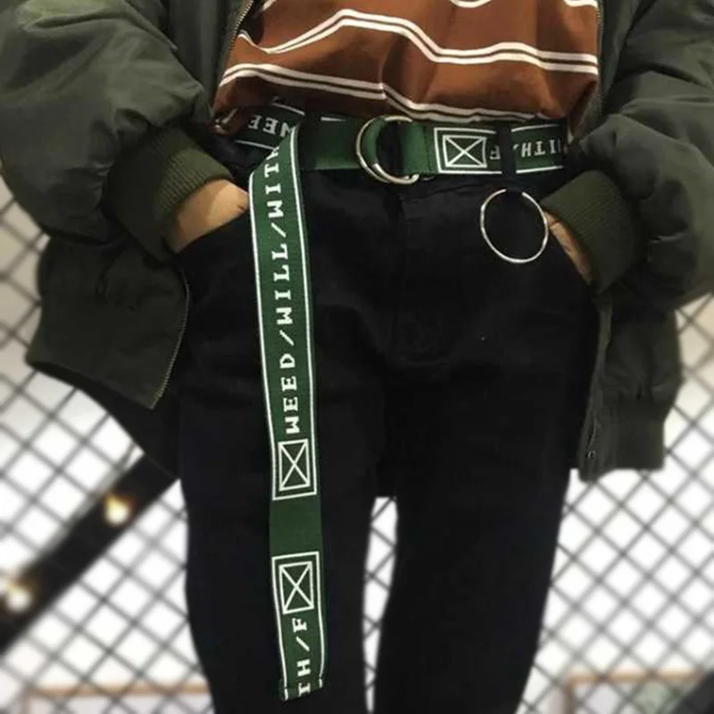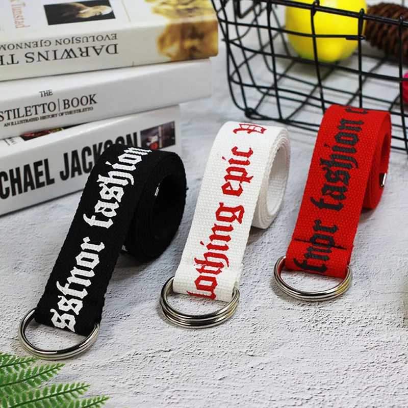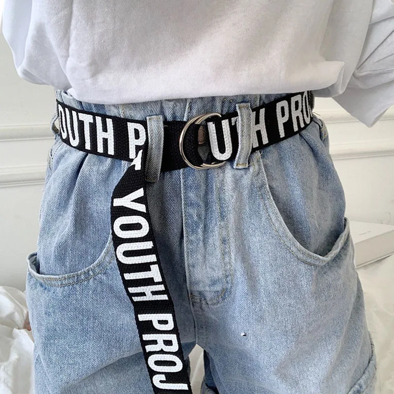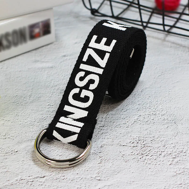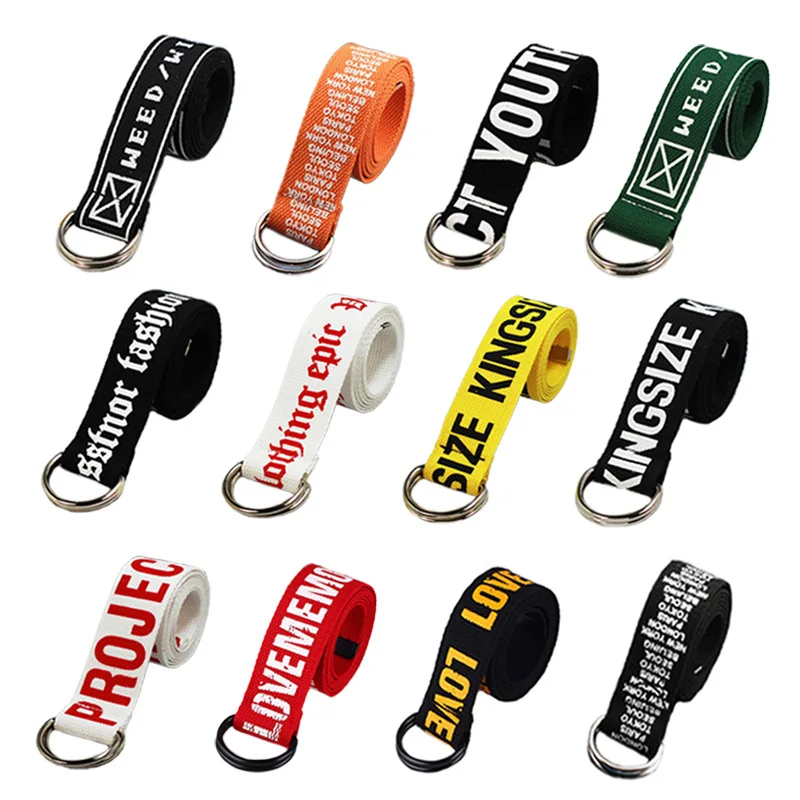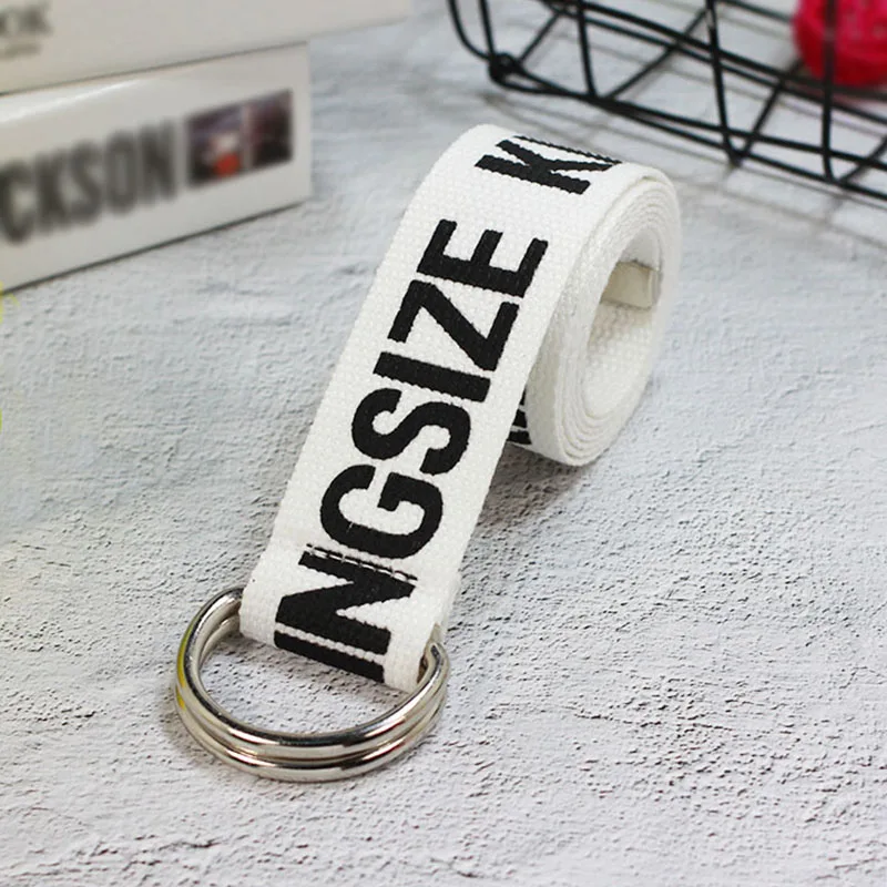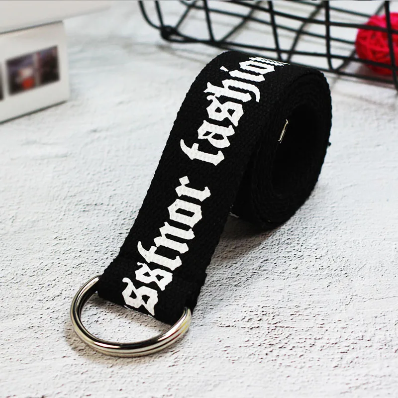 Ремень холщовый в стиле панк для мужчин и женщин, длинный Повседневный Пояс с надписью, с D-кольцом и пряжкой, для штанов, в стиле Харадзюку, черный белый