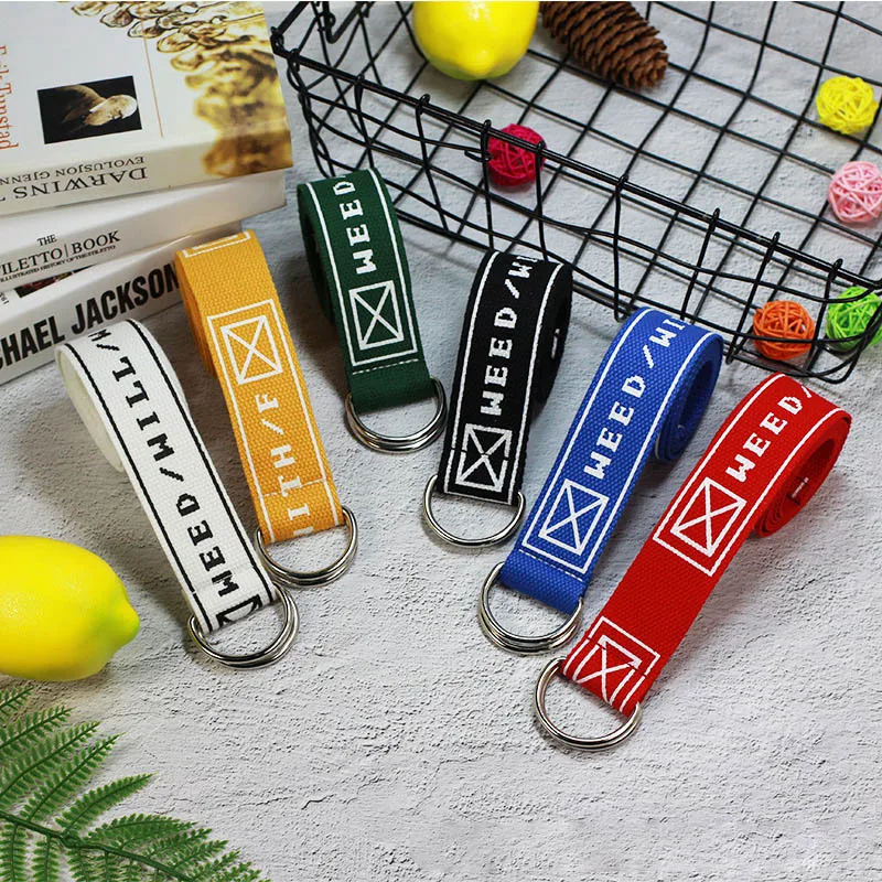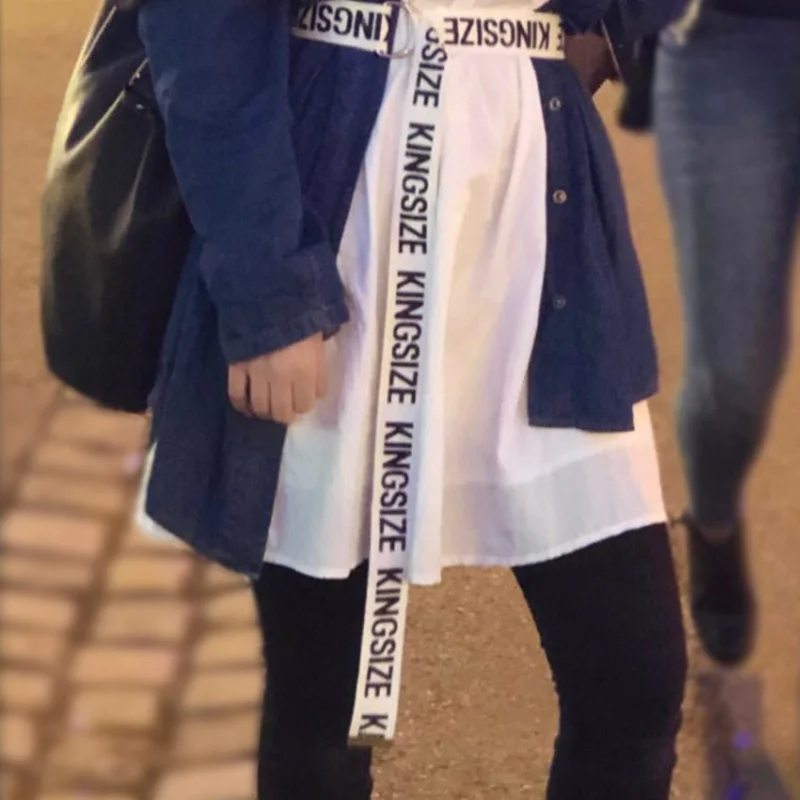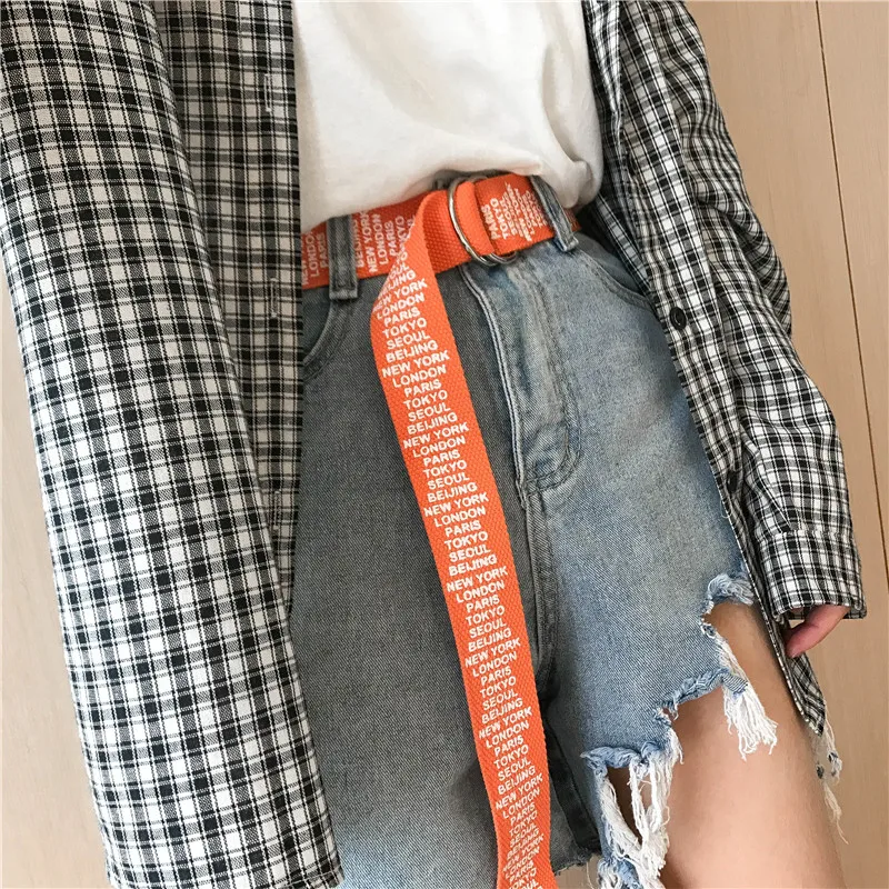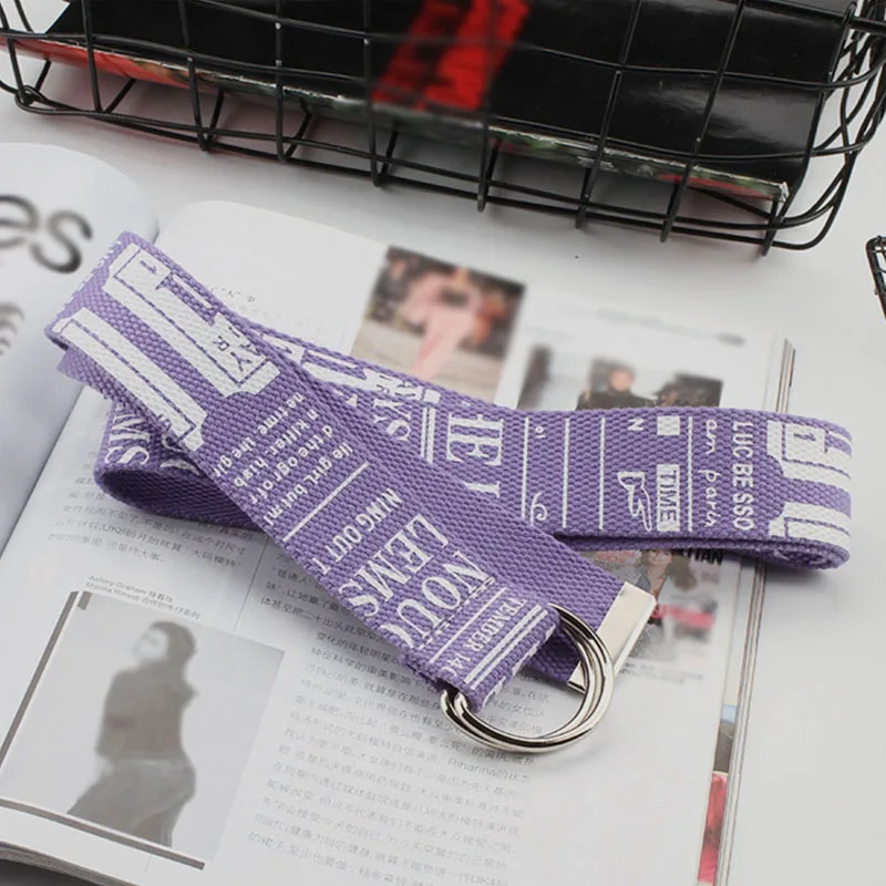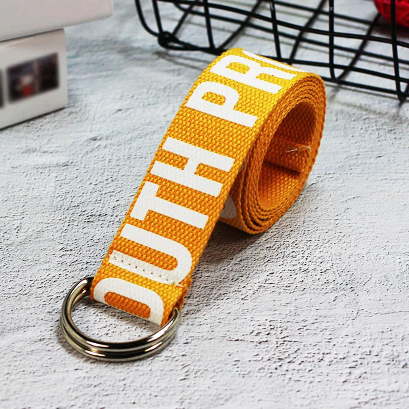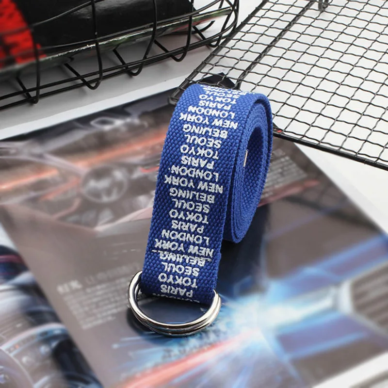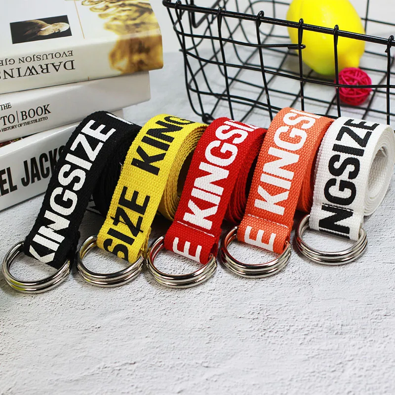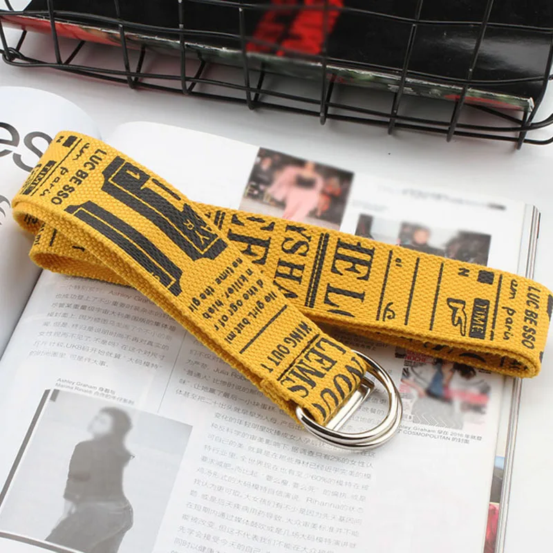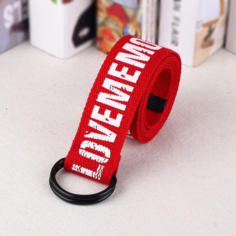 Ремень холщовый в стиле панк для мужчин и женщин, длинный Повседневный Пояс с надписью, с D-кольцом и пряжкой, для штанов, в стиле Харадзюку, черный белый