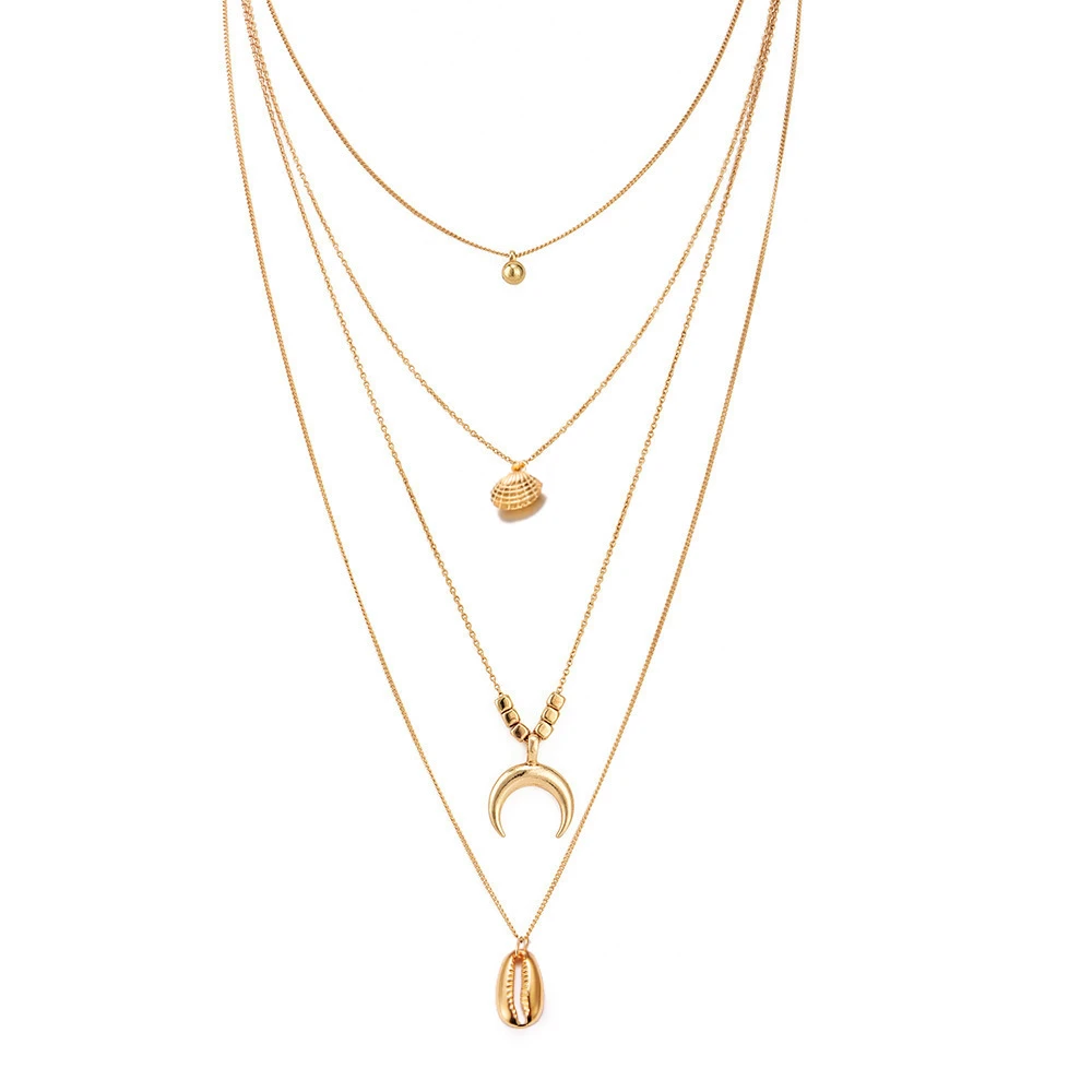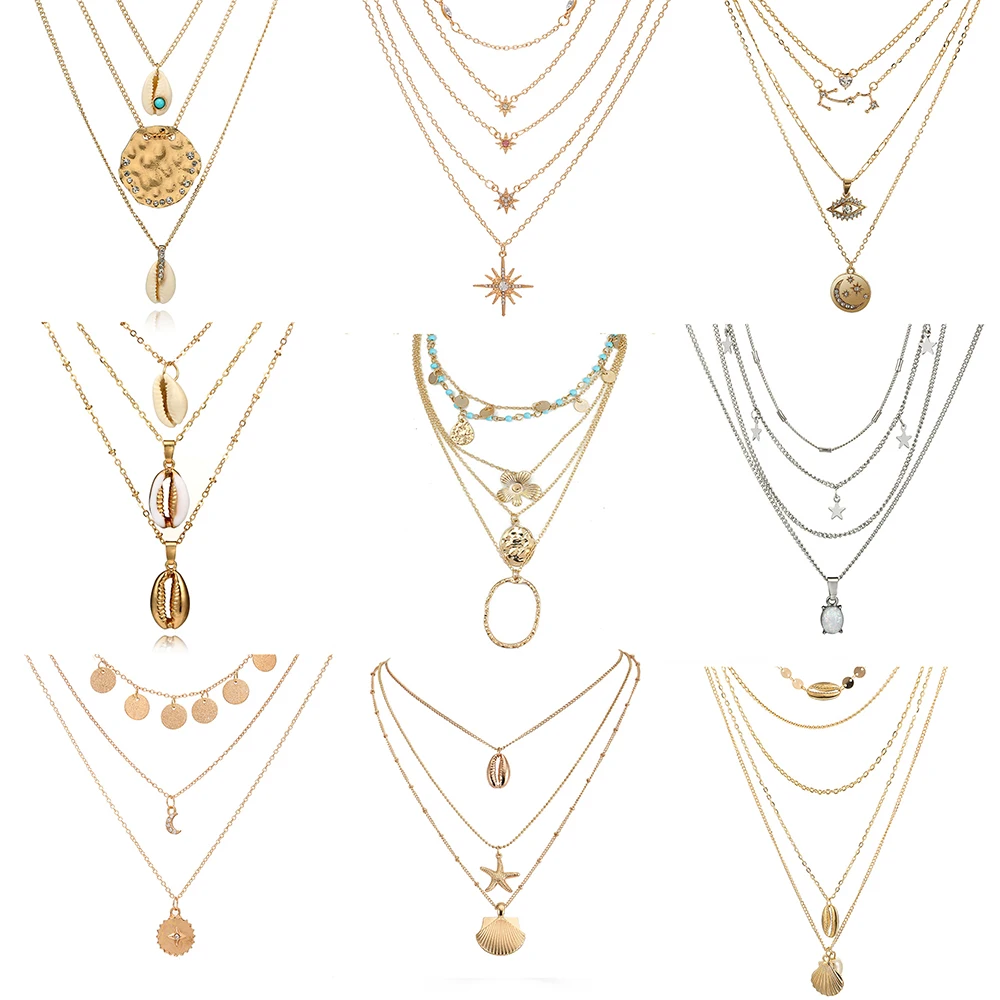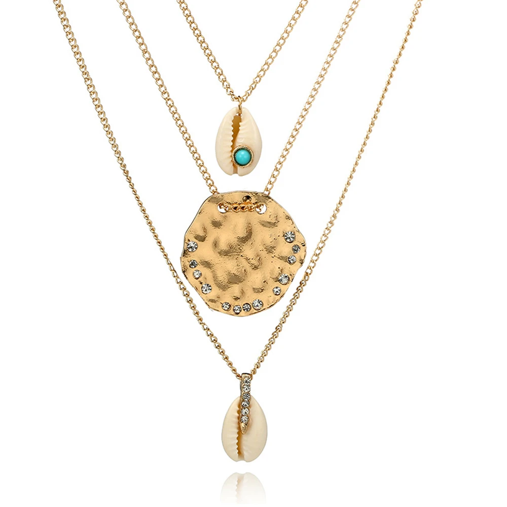 3 шт.компл. Винтаж раковину колье Цепочки и ожерелья для Для женщин Золотой Цвет Подвеска из морской раковины Цепочки и ожерелья s богемное колье ювелирное изделие, опт