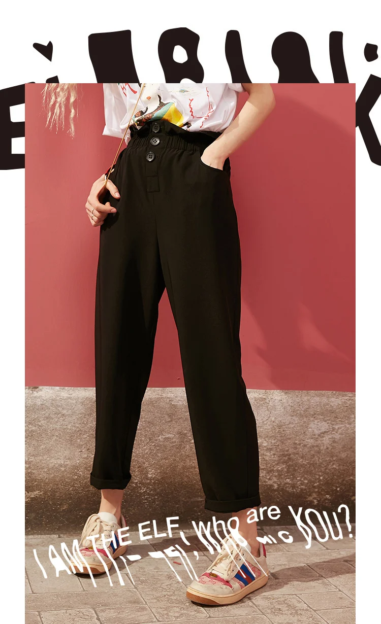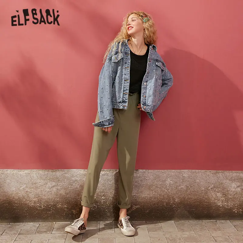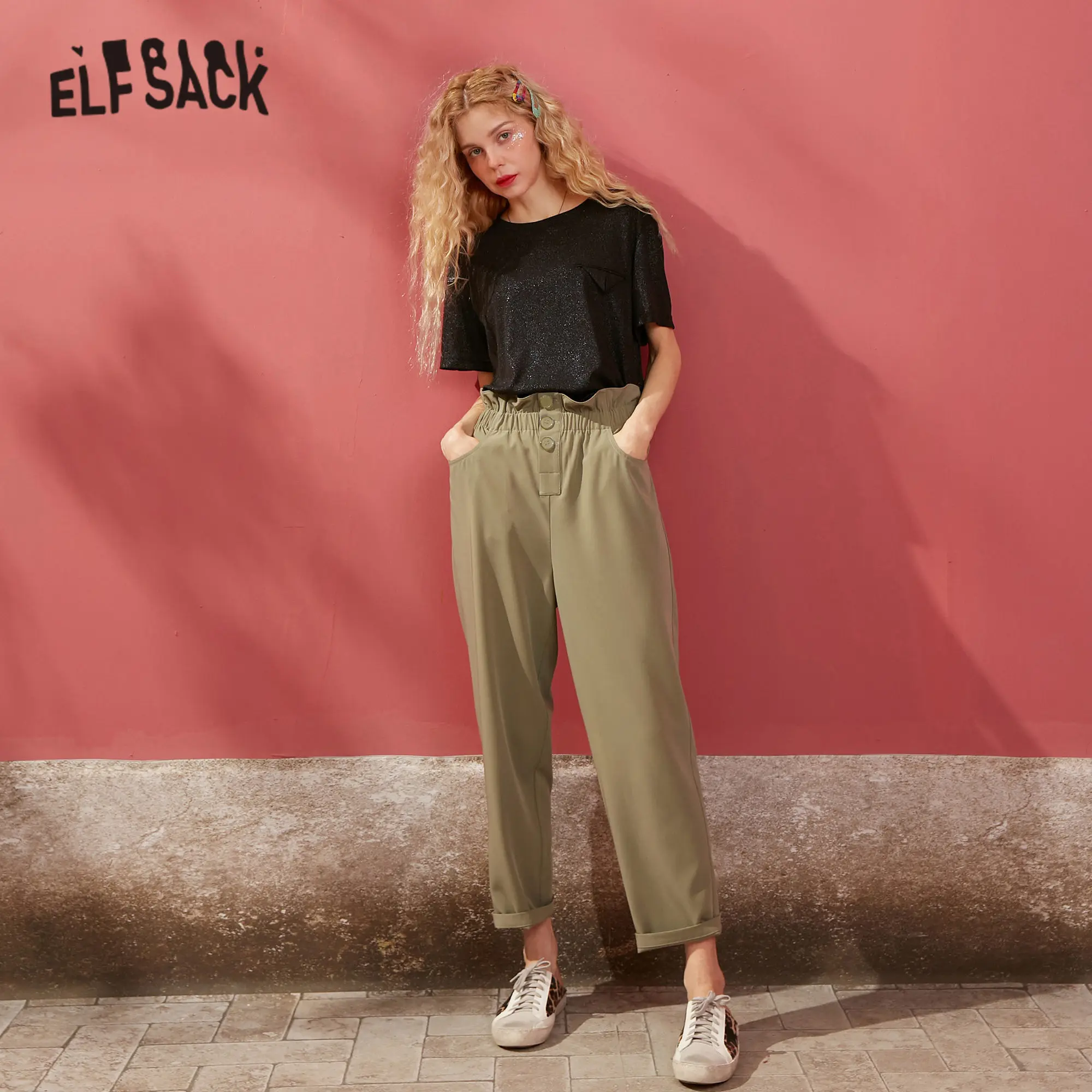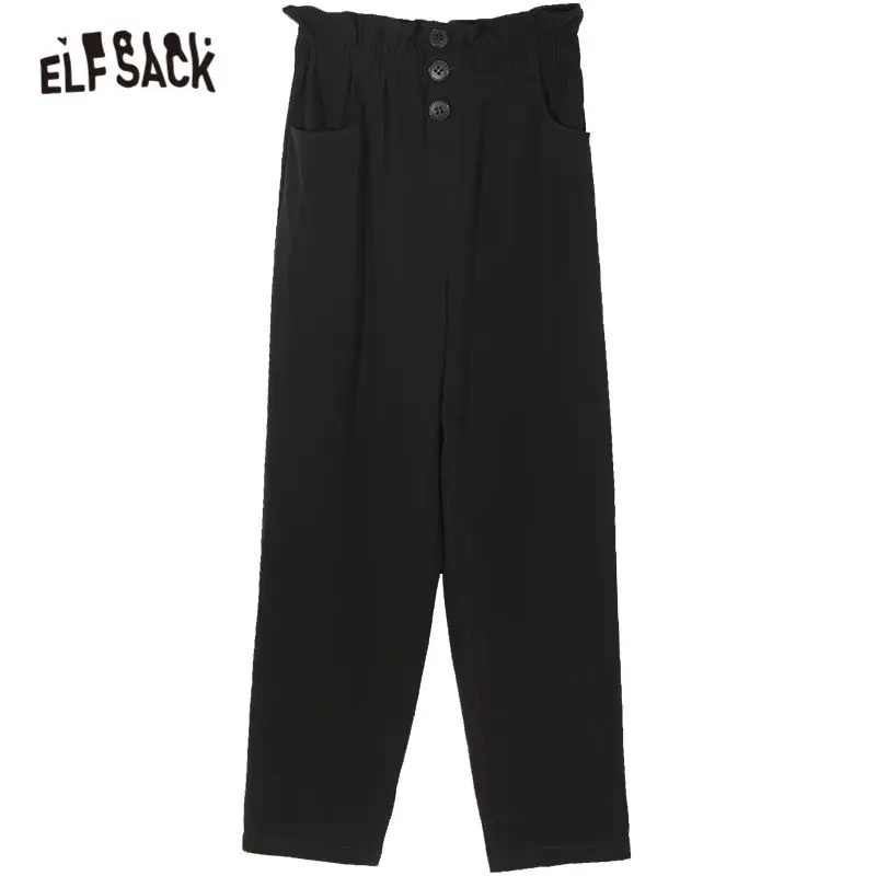 Женские прямые брюки ELFSACK, черные однотонные повседневные брюки с эластичной резинкой на талии, базовые весенние брюки в Корейском стиле, 2020