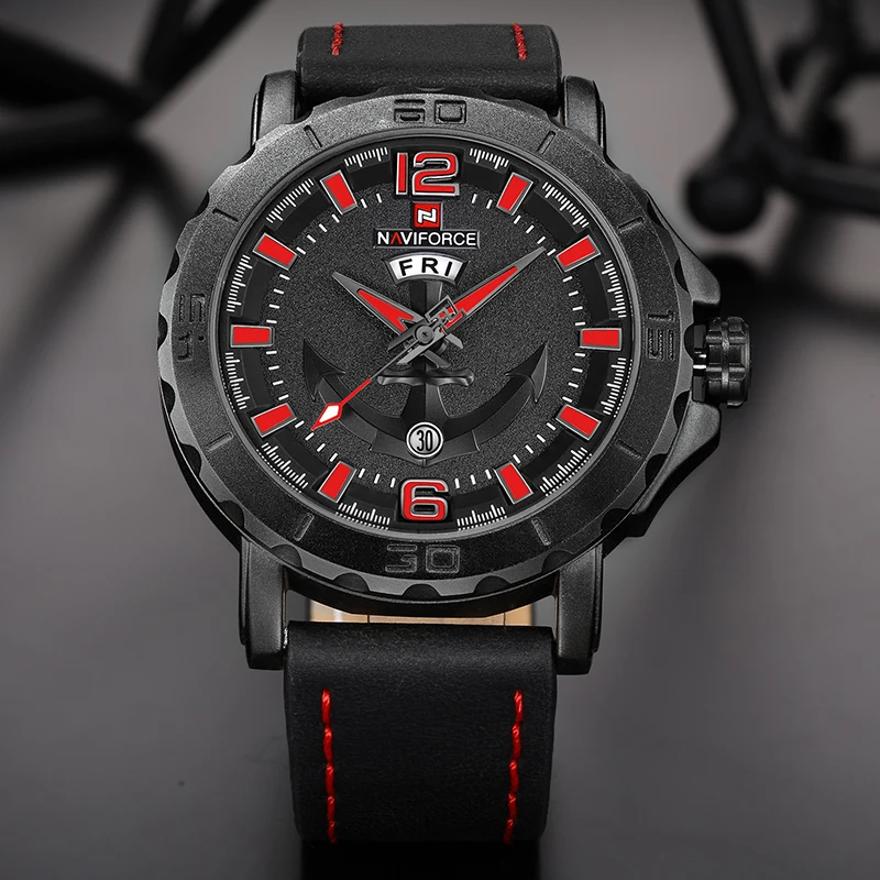 Часы наручные NAVIFORCE Мужские кварцевые, повседневные водонепроницаемые Роскошные спортивные в стиле милитари, с кожаным ремешком, с датой