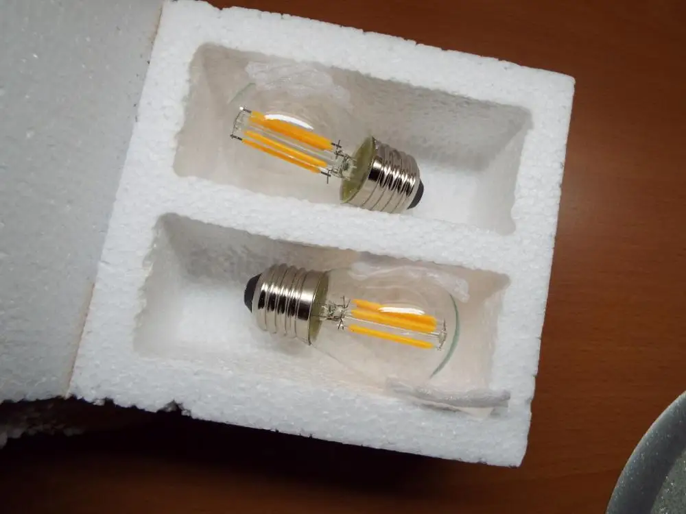 Отличная лампочка. И упаковка отличная, в пенопласте.Взяла пока одну, для пробы. Но погарячилась с размером (взяла самую большую). И по моему она не влезет в светильник шар (заказала, ещё не приехал)!