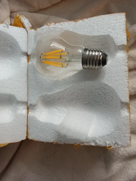 Лампа прибыла достаточно быстро. Очень хорошо защищен для путешествий. Стеклянный пузырь, желтый свет. У меня такой же, как у leflektorem, 4,5ватт, который светится уже несколько лет. Не видна значительная разница между количеством излучаемого света. Раньше у меня было 6wat White, Osram, и они блестели очень четко, но из-за белого цвета свет не прикольный, жены на ваш вкус. Эффект мерцания не виден, но при примерке на мониторе появились полоски. Если кому-то нравится свет, близкий к теплому белому цвету лампы накаливания 60wat, рекомендуется в качестве лучшего. Достаточно того, для большой комнаты rozswietlenia нужно несколько светодиодных ламп.