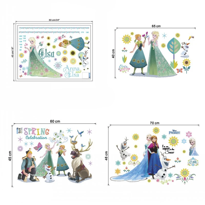 Disney Мультфильм Замороженные настенные наклейки для девочек, аксессуары для спальни, домашний декор, Эльза Анна, Наклейки на стены, ПВХ, самодельные постеры