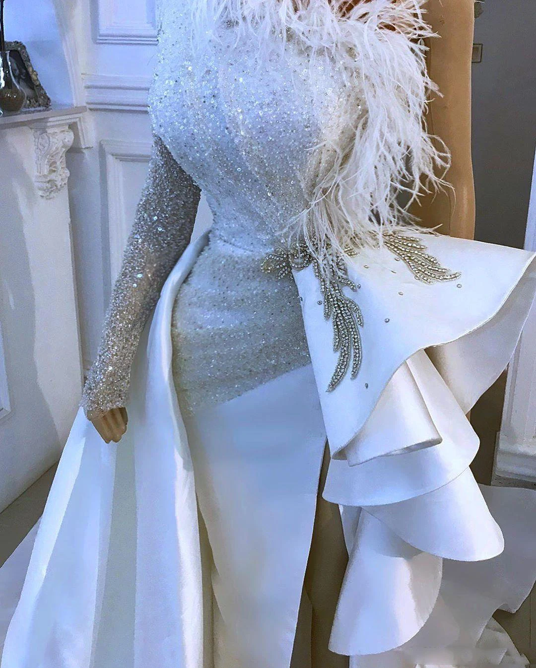 2020 арабское Aso Ebi блестящее Сексуальное Дешевое вечернее платье на одно плечо с кристаллами платья с перьями для выпускного вечера облегающие вечерние платья