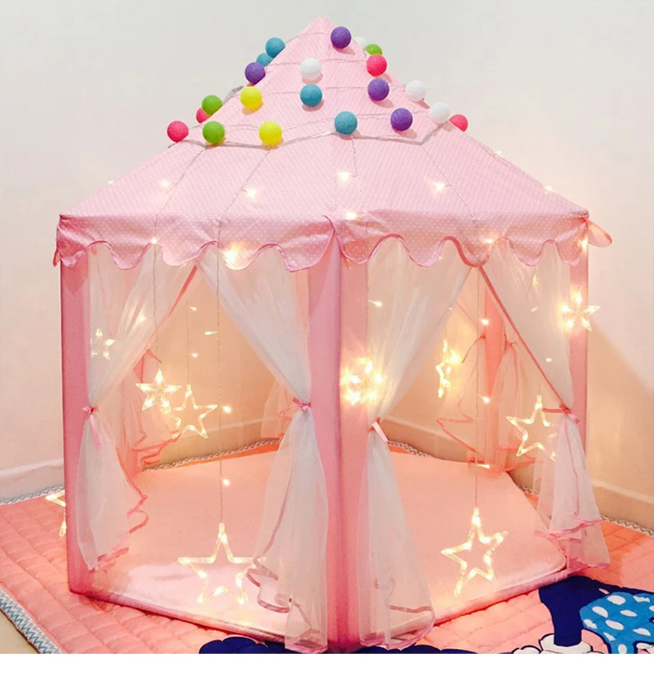 Посылка: 1 х палатка с замком принцессы (светодиодные гирлянды, мячи, игрушки или другие украшения в комплект не входят)