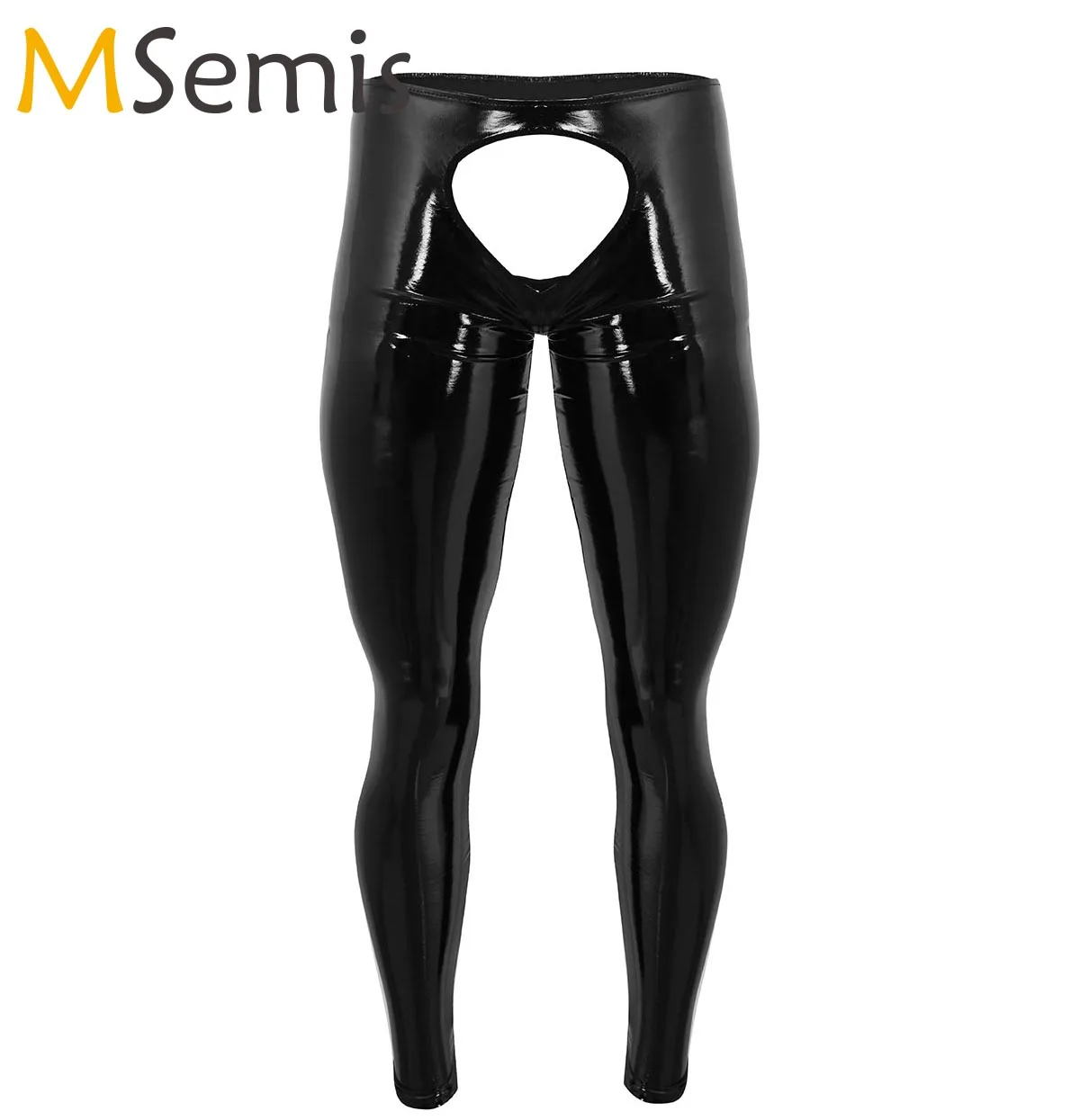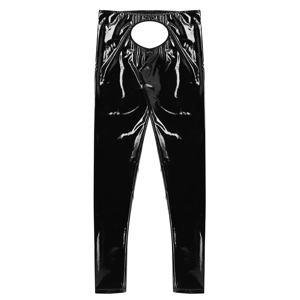 Черные мужские латексные брюки, пикантные кожаные леггинсы с открытыми ягодицами и вырезом, эротическое обтягивающее белье для геев, брюки для ночного клуба и танцев на шесте