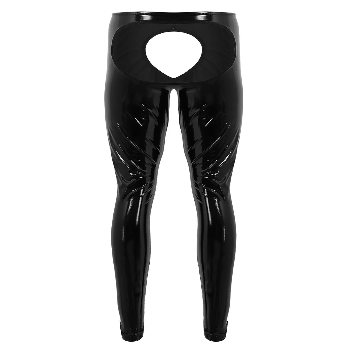 Брюки мужские латексные с открытой ягодицей, пикантные кожаные леггинсы с вырезами, эротическое нижнее белье для геев, для ночного клуба, танцев на шесте, черные