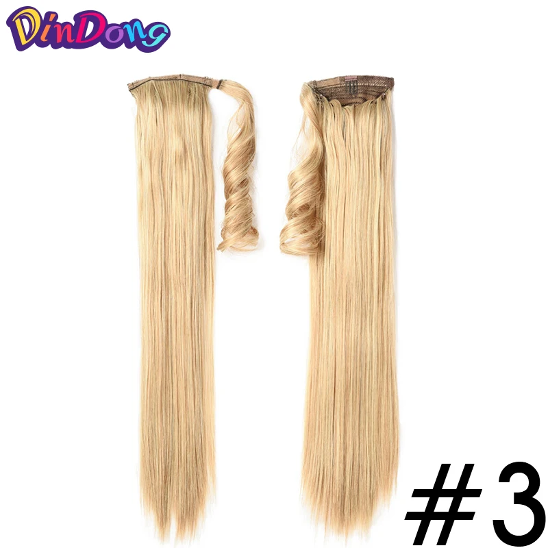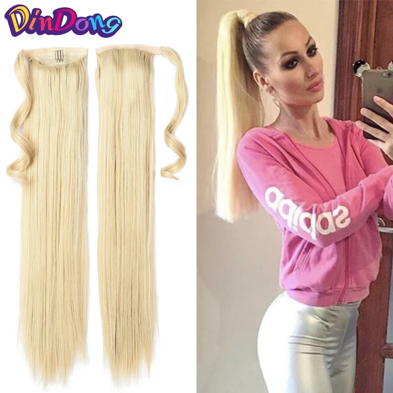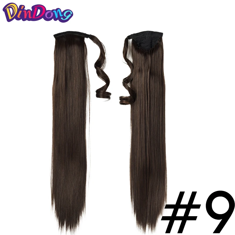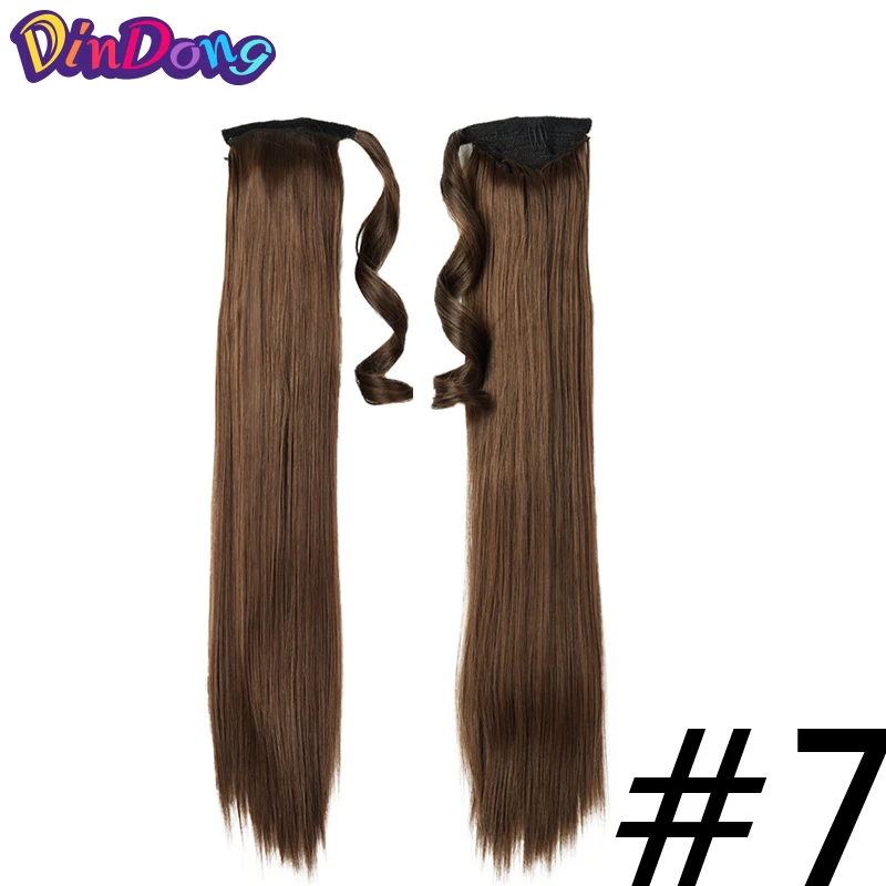 DinDong, 24 дюйма, прямые, на застежке, на шнурке, конский хвост, синтетическая обмотка вокруг конского хвоста, волосы для наращивания