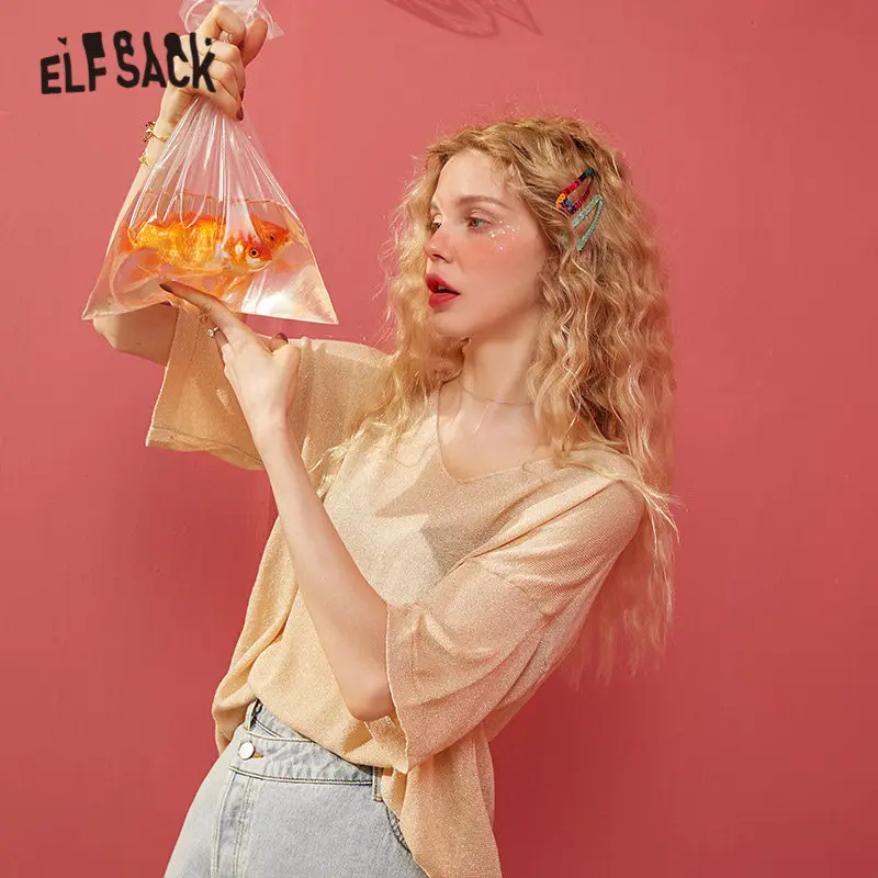 Женский яркий вязаный свитер ELFSACK, зеленый однотонный Повседневный свитер с полурукавами в Корейском стиле, весна 2020